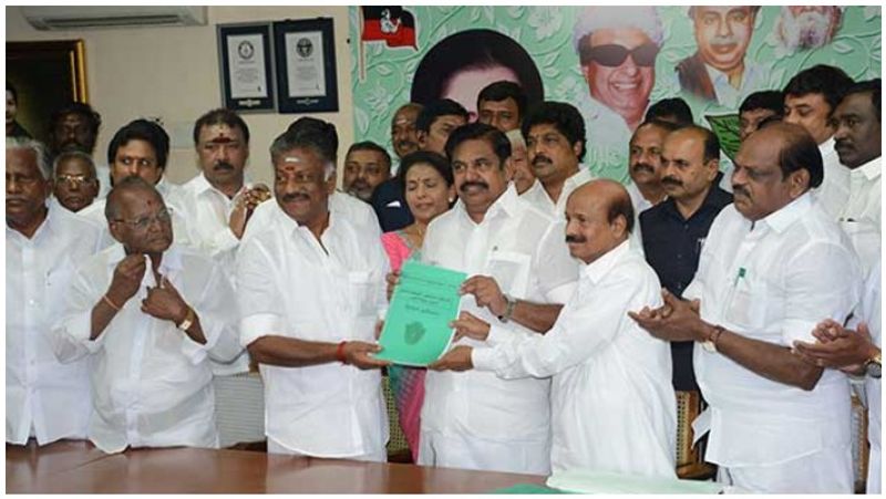 ஆங்கிலம்-தமிழ் ஆகிய இரு மொழிகளில் தயாரிக்கப்பட்டுள்ள இந்த தேர்தல் அறிக்கையை தலைமை கழகத்தில் முதல்வர் எடப்பாடி பழனிசாமி, துணை முதல்வர் ஓ.பன்னீர்செல்வம் ஆகியோரிடம் பொன்னையன் இன்று சமர்ப்பித்தார். தேமுதிக, அதிமுக கூட்டணியில் இணைவது தாமதமாகி வந்தாலும் அதிமுக இனி தேர்தல் பணிகளில் கவனம் செலுத்தப்போவதாக அதிமுக நிர்வாகிகள் கூறுகின்றனர்.