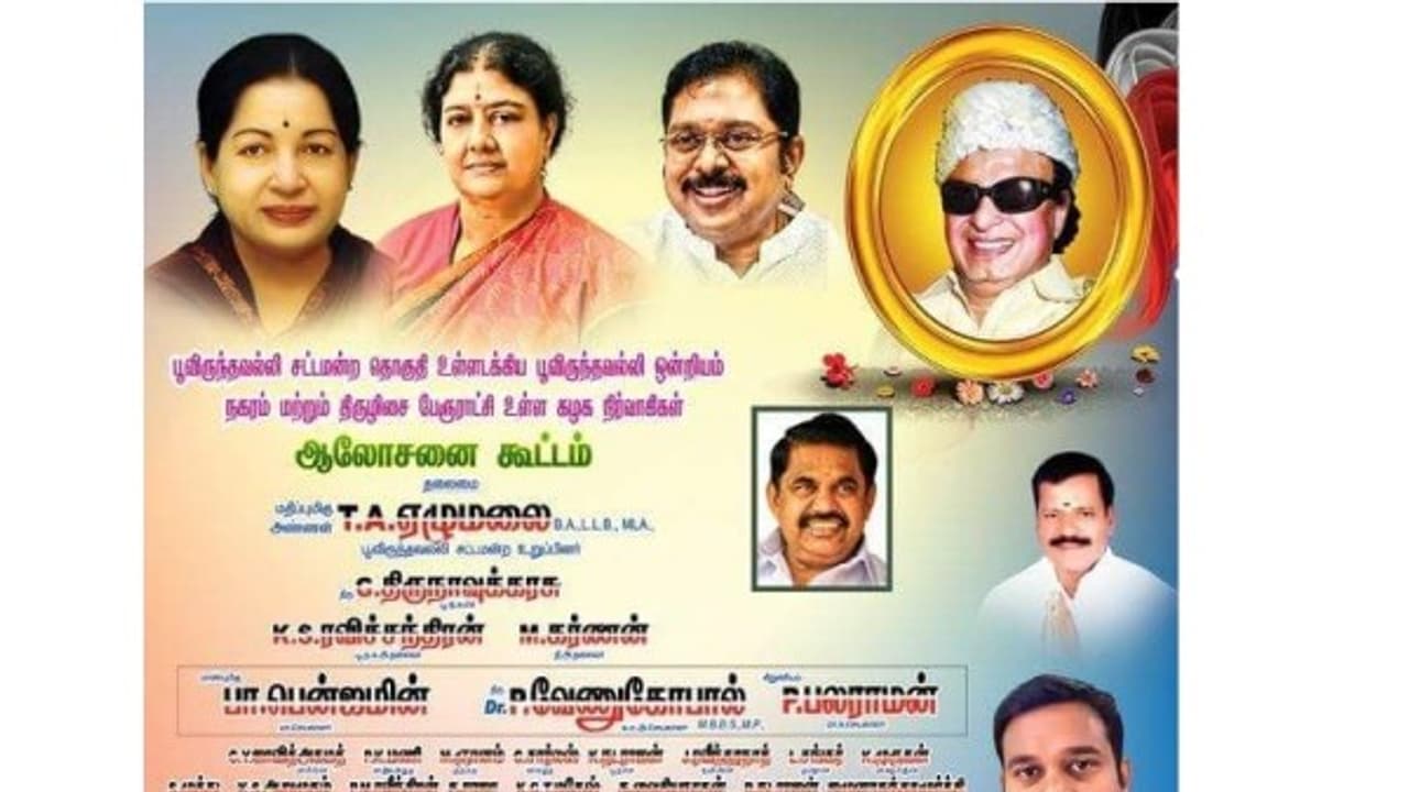 இந்நிலையில், பூந்தமல்லி சட்டமன்ற உறுப்பினர் தலைமையில் நடைபெறும் ஆலோசனை கூட்டத்திற்கு போஸ்டர் ஒன்று ஒட்டப்பட்டுள்ளது. அதில் ஜெயலலிதா, சசிகலா, டிடிவி தினகரன், எடப்பாடி பழனிசாமி ஆகியோரின் புகைப்படங்கள் இடம்பெற்றுள்ளது.
