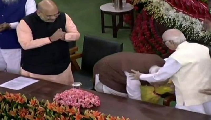 இதன்மூலம் மோடி மீண்டும் பிரதமராக பதவியேற்க உள்ளார். நாடாளுமன்ற கட்சி தலைவராக தேர்வு செய்யப்பட்ட மோடி, அத்வானியின் காலில் விழுந்து ஆசி பெற்றார்.