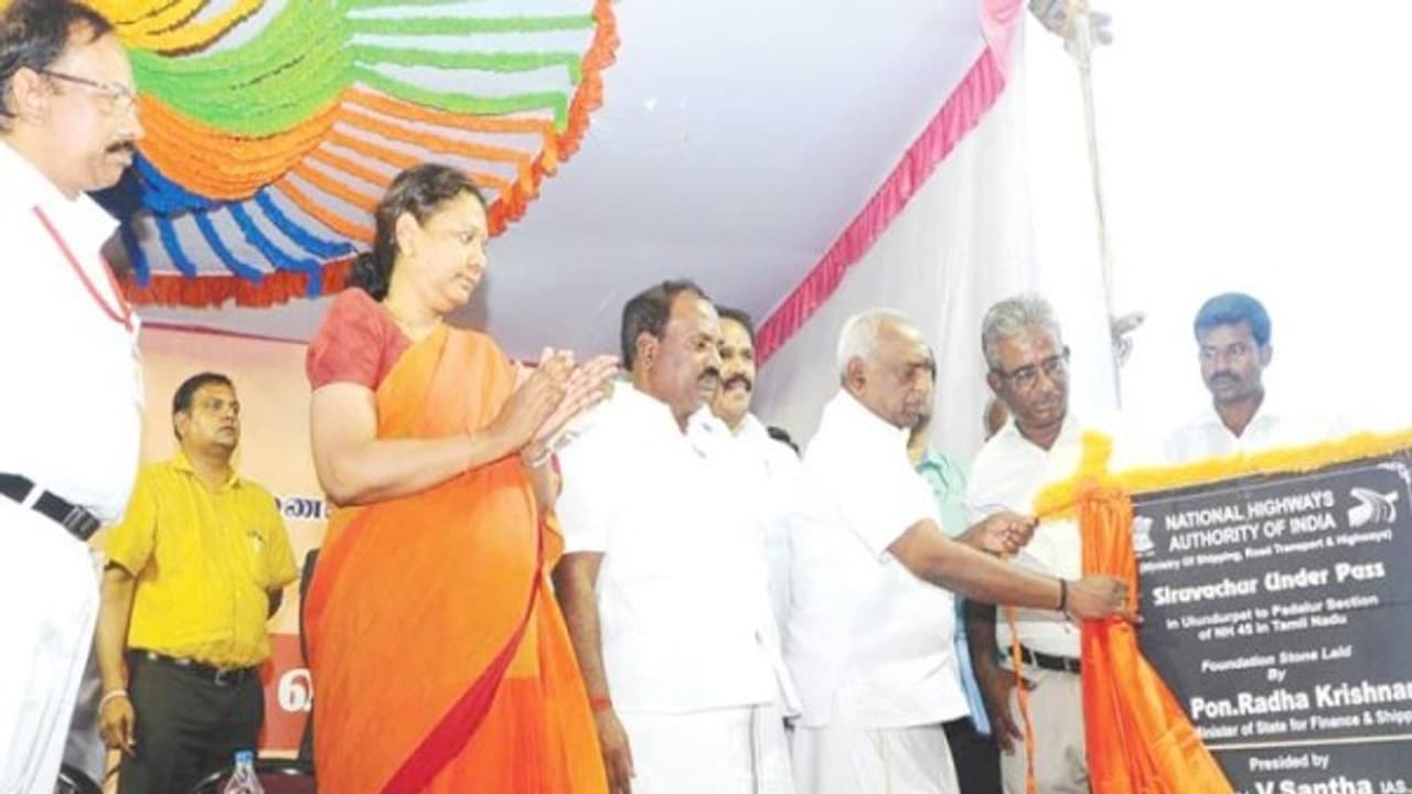 இந்த நிகழ்ச்சிக்கு மாவட்ட ஆட்சியர் சாந்தா தலைமை வகித்தார். மருதராஜா எம்.பி. முன்னிலை வகித்தார். தேசிய நெடுஞ்சாலை ஆணையத்தின் திட்ட இயக்குனர் சங்கரசுப்ரமணியன் வரவேற்றார்.