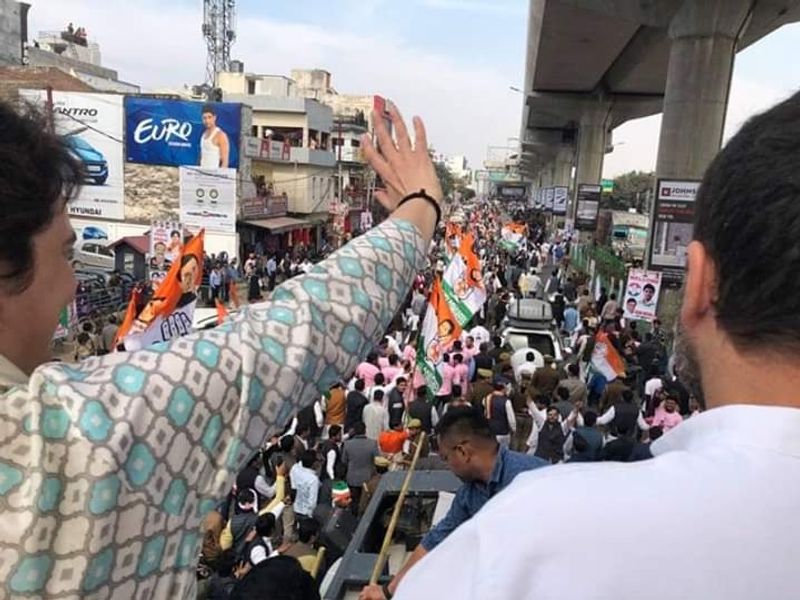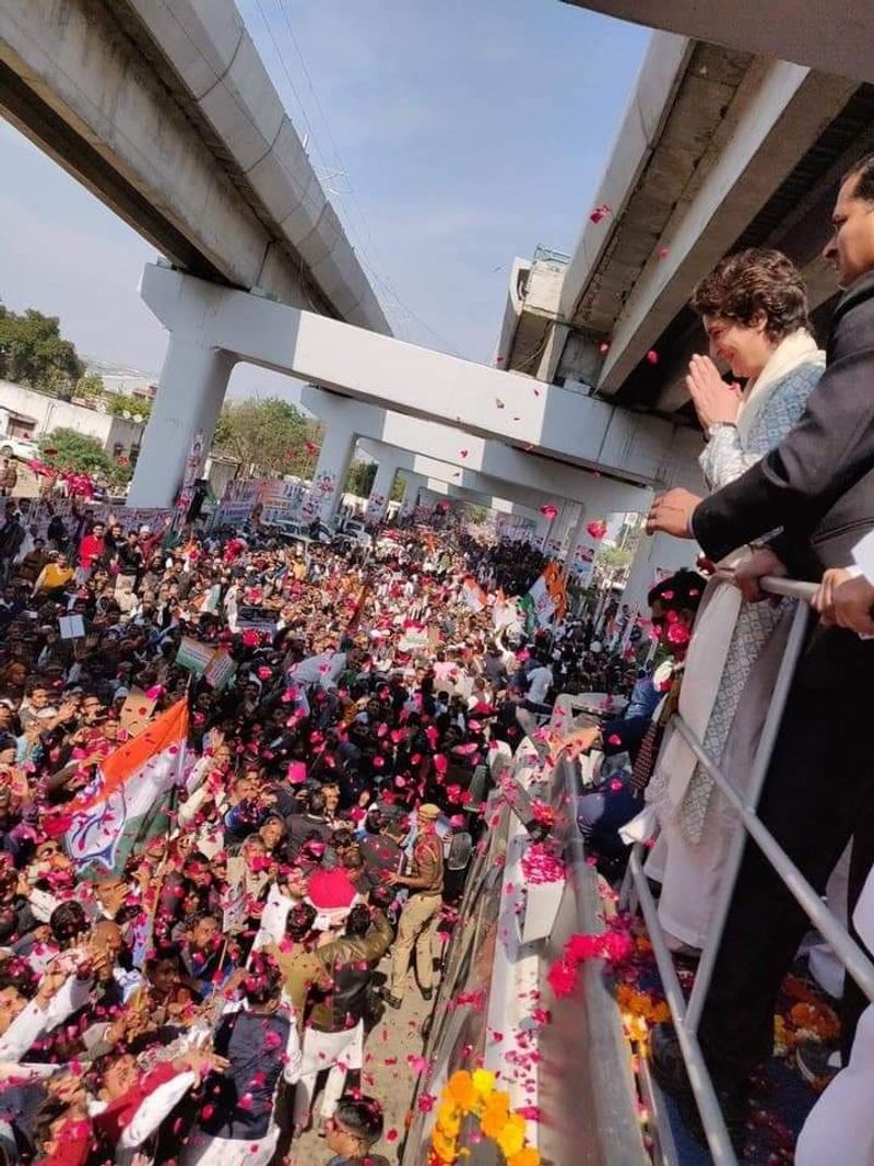 லக்னோ நகரின் மையப் பகுதியில் மால் அவென்யூ எனும் இடத்தில் இருக்கும் உத்தரப்பிரதேசம் மாநில காங்கிரஸ் தலைமை அலுவலகமான “நேரு பவன்” நோக்கி வேனின்மீது நின்றவாறு அவர்கள் பேரணியாக சென்றனர். சுமார் 15 கிலோமீட்டர் தூரம் சென்ற இந்த பேரணியால் அம்மாநில காங்கிரஸ் பிரமுகர்களும், தொண்டர்களும் உற்சாகம் அடைந்துள்ளனர்.