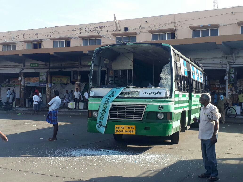 ஸ்டாலின் சட்டை கிழிக்கப்பட்டு தாக்கபட்டதற்கு எதிர்ப்பு தெரிவித்து வேலூர் மாவட்டம் வாணியம்பாடி நகர செயலாளர் சாரதி தலைமையில் நூற்றுகணக்கானோர் திரண்டு பேருந்துகளை மறித்து போராட்டத்தில் ஈடுபட்டனர்.