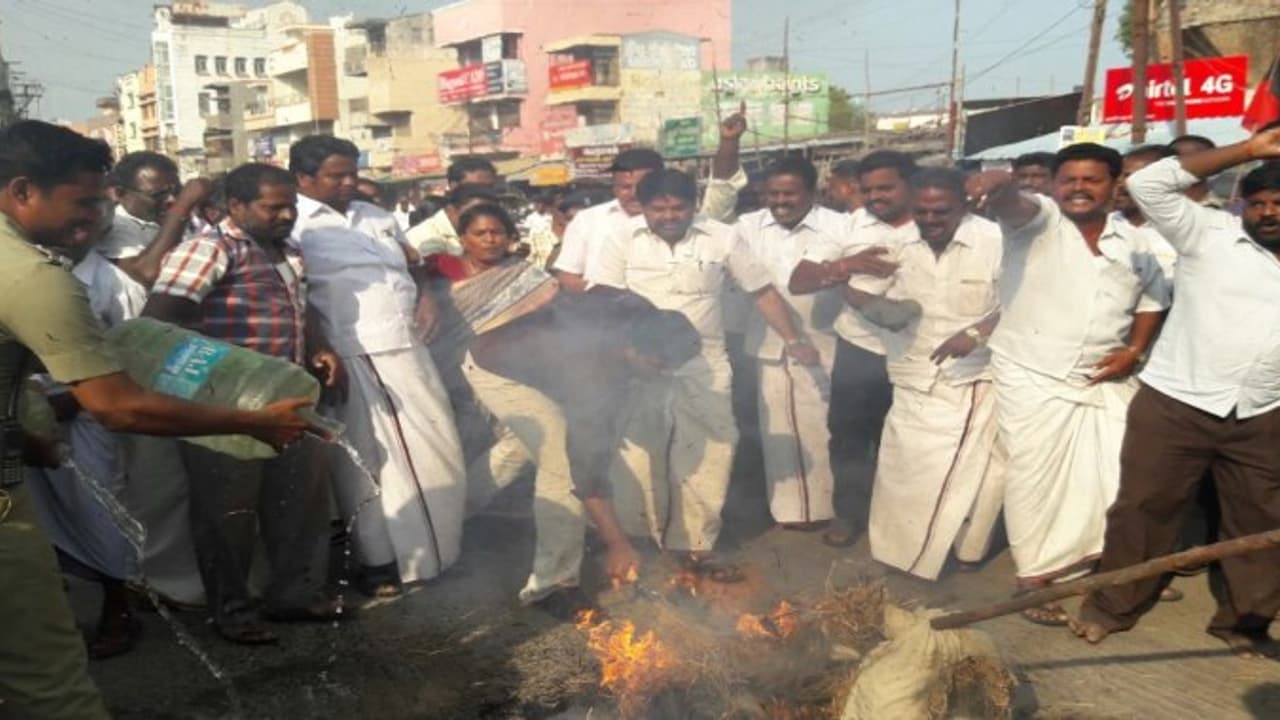 இதே ஒன்று ஆம்பூர், கிருஷ்ணகிரி, தருமபுரி ஆகிய இடங்களிலும் சபாநாயகருக்கு எதிராகவும் சசிகலாவுக்கு எதிராகவும் போராட்டம் நடைபெற்றது.