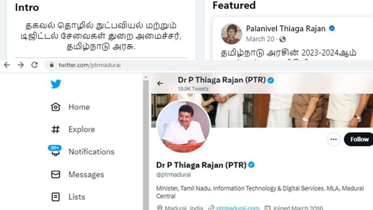 தமிழக அமைச்சரவையில் அதிரடி மாற்றம் செய்யப்பட்டதை அடுத்து நிதியமைச்சராக இருந்த பிடிஆர். பழனிவேல் தியாகராஜனுக்கு தகவல் தொழில்நுட்ப துறை ஒதுக்கீடு செய்யப்பட்டுள்ளது. இதனையடுத்து, டுவிட்டர் மற்றும் முகநூலில் பயோவை அப்டேட் செய்துள்ளார்.