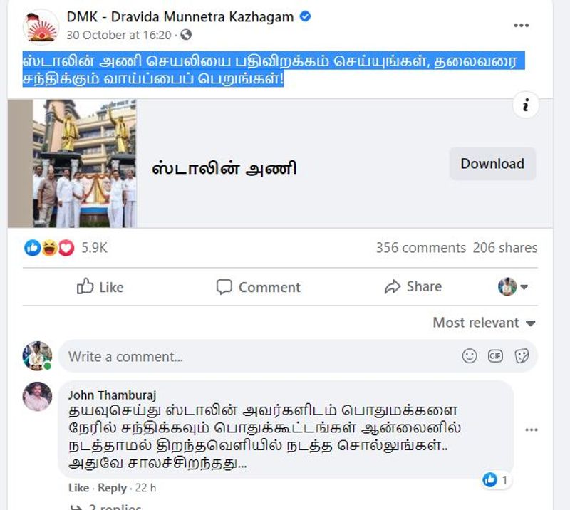 அதேபோல் இந்தச் செயலியை பதிவிறக்கம் செய்து ஸ்டாலினை சந்திக்கலாம் எனக் கூறப்பட்டுள்ளதற்கு கடும் எதிர்ப்புகளும் கிளம்பி இருக்கிறது. ’’நீங்கள் பதவிக்கு வர வேண்டும். தமிழகத்தில் ஆள வேண்டும். உங்கள் குடும்ப உறுப்பினர்கள் அனைவரும் கட்சியில் வர வேண்டும். நீங்கள் ஆட்சிக்கு வர வேண்டும் என்றால் நீங்கள் வந்து எங்களை பார்க்க வேண்டும். நாங்கள் ஒட்டு போட்டால் தான் நீங்கள் ஆட்சிக்கு வர முடியும். நீங்கள் வந்து எங்களை பார்ப்பது மிகவும் நன்றாக இருக்கும்’’எனக் கூறியுள்ளனர்.
