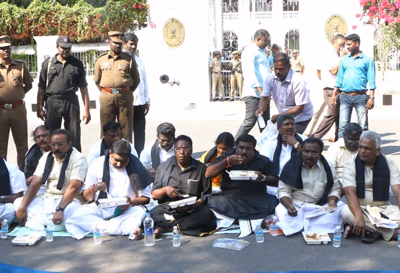 மக்கள் நலத்திட்டங்களுக்கு தொடர்ந்து முட்டுக்கட்டை போட்டு வருவதாக கவர்னர் கிரண்பெடியை கண்டித்து முதலமைச்சர் நாராயணசாமி கவர்னர் மாளிகை முன்பு திடீர் தர்ணா போராட்டத்தில் இறங்கினார்.