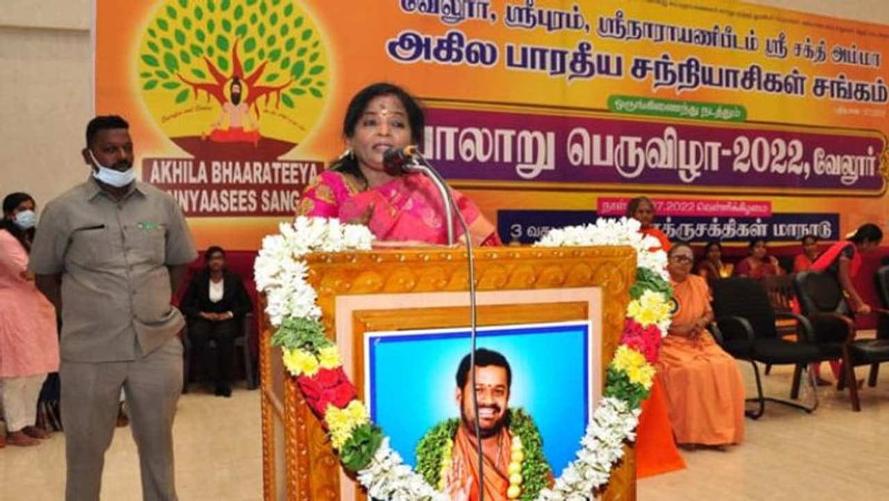 வேலூர் அடுத்த ஸ்ரீபுரம் நாராயணி மஹாலில் அகில பாரதிய சன்னியாசிகள் சங்கத்தின் சார்பில் பாலாறு பெருவிழா நடந்து வருகிறது. இதில் புதுச்சேரி மற்றும் தெலங்கனா கவர்னர் தமிழிசை சௌந்தரராஜன் இன்று கலந்து கொண்டார். அப்போது பேசிய அவர், ‘காவிகள் இருக்கும் இடத்தில் அன்பு அதிகாரம் பலம் அனைத்தும் இருக்கும்.