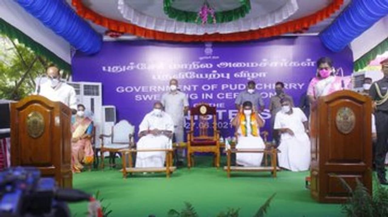 புதுச்சேரி முதலமைச்சராக என்.ஆர்.காங்கிரஸ் கட்சி தலைவர் ரங்கசாமி கடந்த மே7ம் தேதி பதவியேற்றார். பாஜகவுடனான அமைச்சர்கள் குறித்த பேச்சுவார்த்தையில் சுமூக முடிவு எட்டப்படாதை அடுத்து 50 நாட்களாகியும் அமைச்சரவை அமையாமல் இருந்தது. இறுதியில் சுமூக உடன்பாடு ஏற்பட்டு என்ஆர்.காங்கிரசில் லட்சுமிநாராயணன், தேனீஜெயக்குமார், சந்திரபிரியங்கா, பாஜகவில் நமச்சிவாயம், சாய்சரவணக்குமார் ஆகியோர் அமைச்சர்களாக பரிந்துரைக்கப்பட்டனர். அமைச்சர்கள் பட்டியலுக்கு ஜனாதிபதி ஒப்புதல் கிடைத்து அரசிதழில் வெளியிடப்பட்டது.