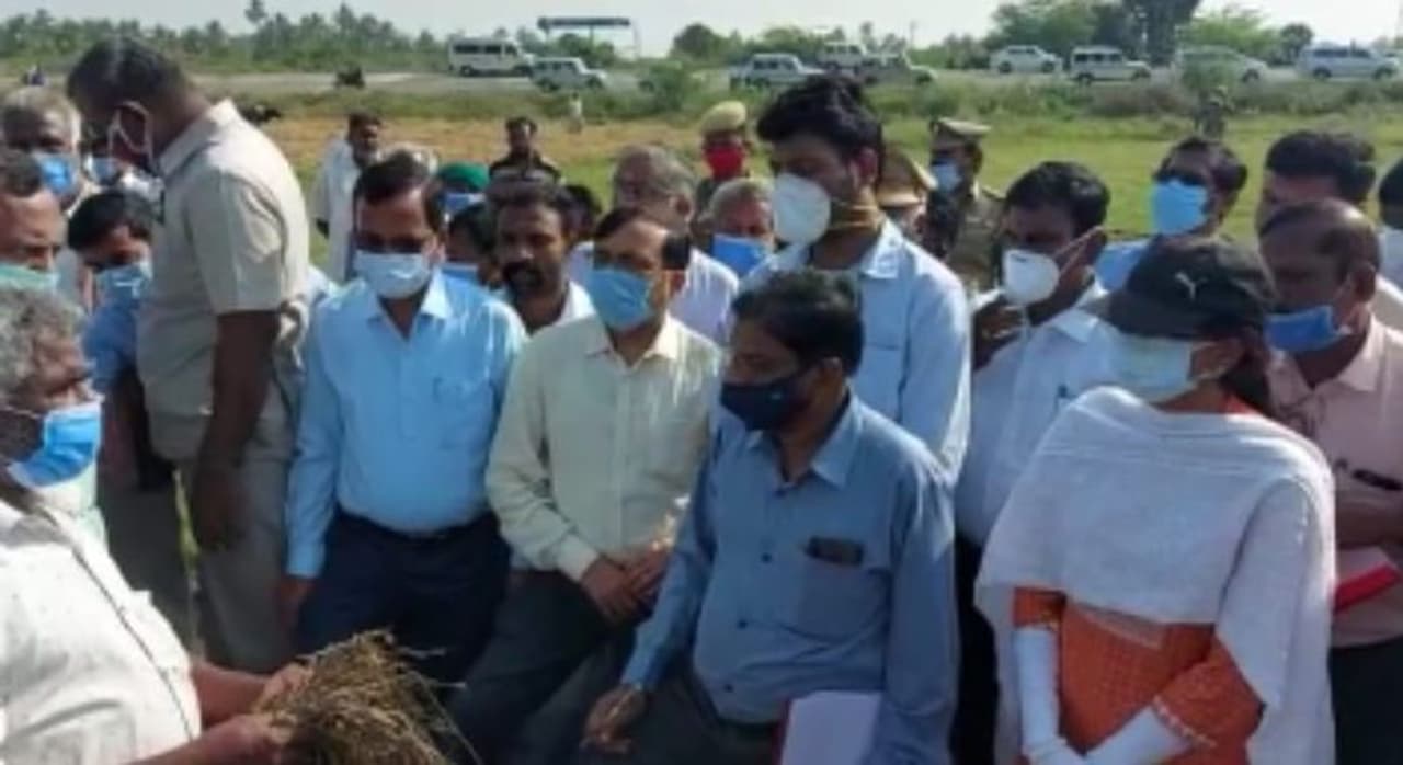 இந்த ஆய்வில் மீன்வள மேம்பாட்டு துறை ஆணையர் பால் பாண்டியன் தலைமையில் வேளாண்மை துறை இயக்குநர் தட்சிணாமூர்த்தி சாலை பாதுகாப்பு மற்றும் நெடுஞ்சாலைத் அமைச்சகத்தின் மண்டல மேலாளர் ரஞ்சன் ஷேக் சிங் மத்திய மின்சார ஆணையத்தின் உதவி இயக்குனர் ஷீபம் கார்க் ஆகியோர் கொண்ட குழுவுடன் புதுக்கோட்டை மாவட்ட ஆட்சியர் உமா மகேஸ்வரி மற்றும் அதிகாரிகள் காவல்துறையினர் வேளாண்மை துறையினர் உள்ளிட்ட அரசு அதிகாரிகள் கலந்துகொண்டனர். முன்னதாக விவசாயிகளிடம் நேரில் பேசிய அதிகாரிகள் உங்களுக்கு என்னென்ன பாதிப்பு ஏற்படுத்தப்பட்டுள்ளது இதனால் நீங்கள் எவ்வாறு பாதிக்கப்பட்டுள்ளீர்கள் என கேட்டறிந்தனர்.