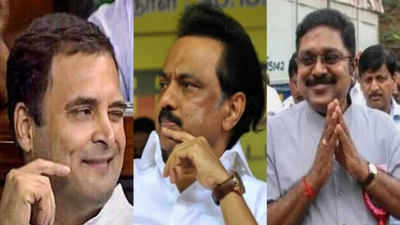 நாடாளுமன்ற தேர்தலில் தினகரனின் அம்மா மக்கள் முன்னேற்ற கழகத்துடன் கூட்டணி அமைத்து தி.மு.கவுக்கு அல்வா கொடுக்க ராகுல் காந்தி காய் நகர்த்துவதாக டெல்லி காங்கிரஸ் வட்டாரங்களில் தகவல்கள் கசிந்து வருகின்றன.