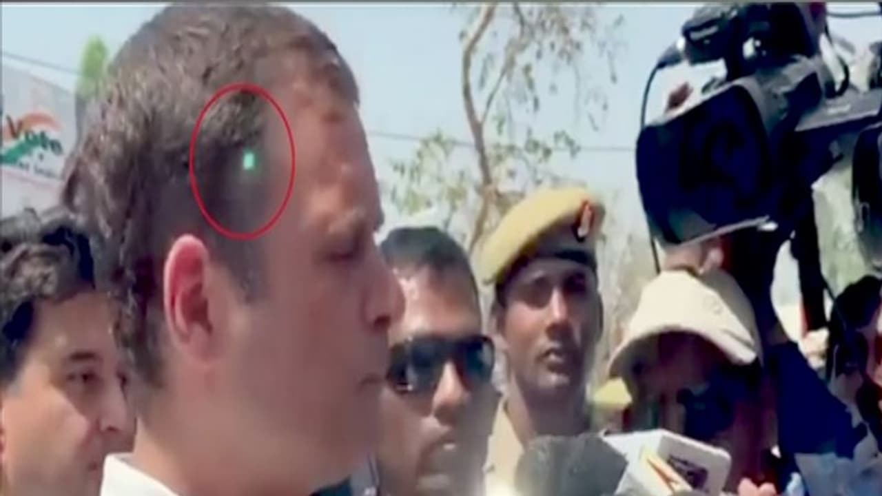 ராகுலை நோக்கி மீண்டும் லேசர் கதிர்கள் பாய்ந்தன. பச்சை நிறத்தில் வந்த அந்த லேசர் கதிர்கள் அவரது தலை மீது குறி பார்த்து வந்தன.