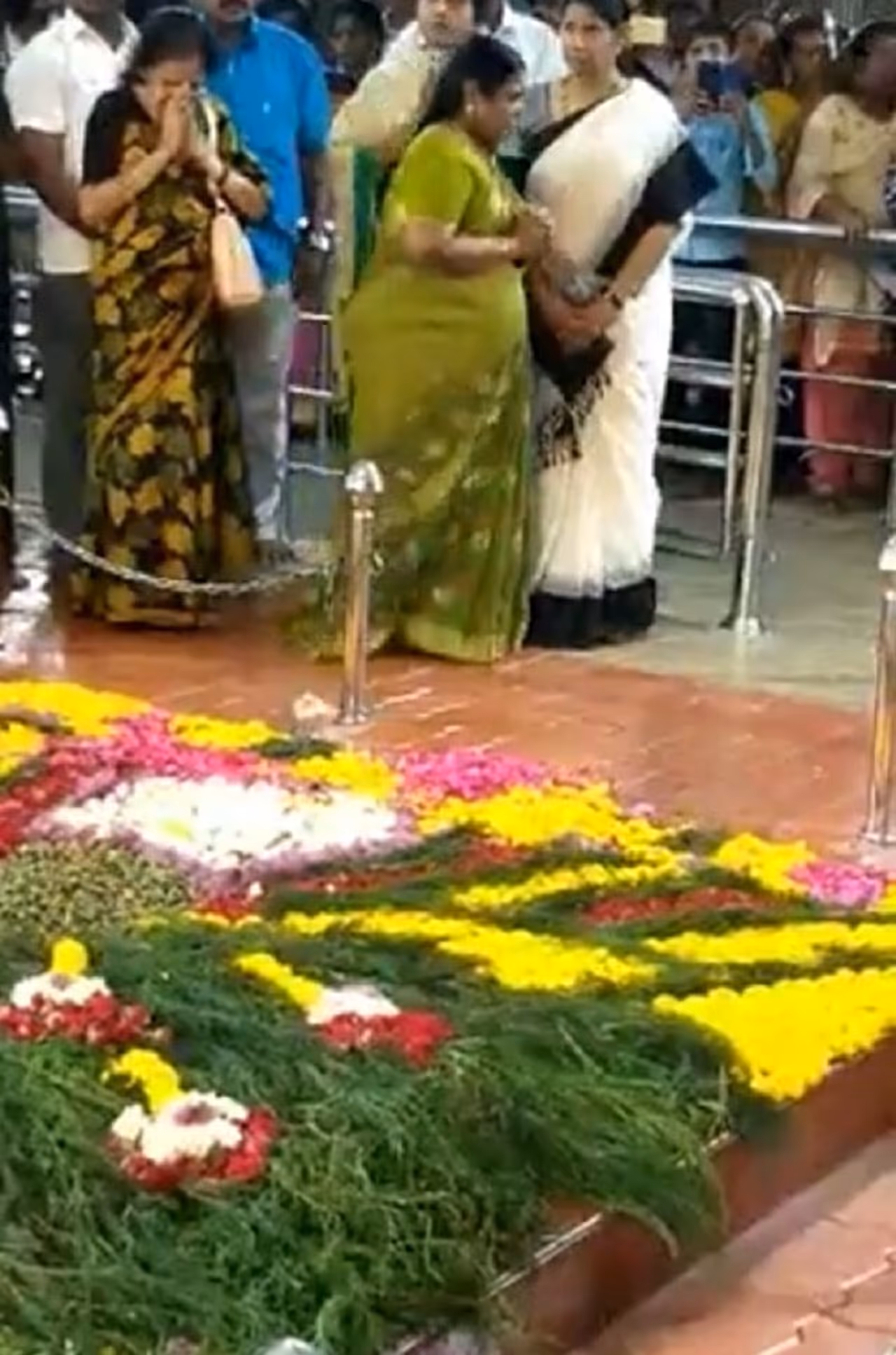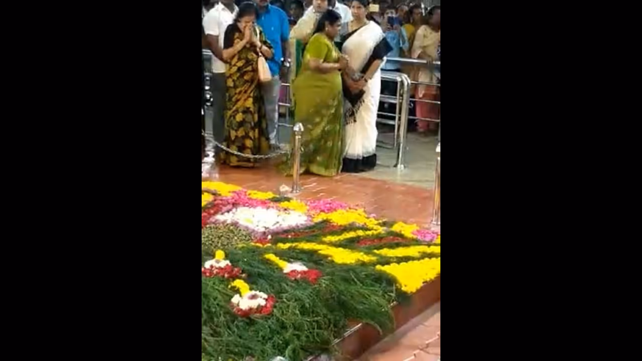 இதற்கொல்லாம் ஒரு படி மேலே சென்று வியப்பை ஏற்படுத்தியது நேற்று மாலை நடந்த ஒரு நிகழ்வுதான். மாலை திடீரென கருணாநிதியின் மனைவி ராசாத்தி அம்மாவும், கனிமொழியும் அவர் சமாதிக்கு வந்தனர்.