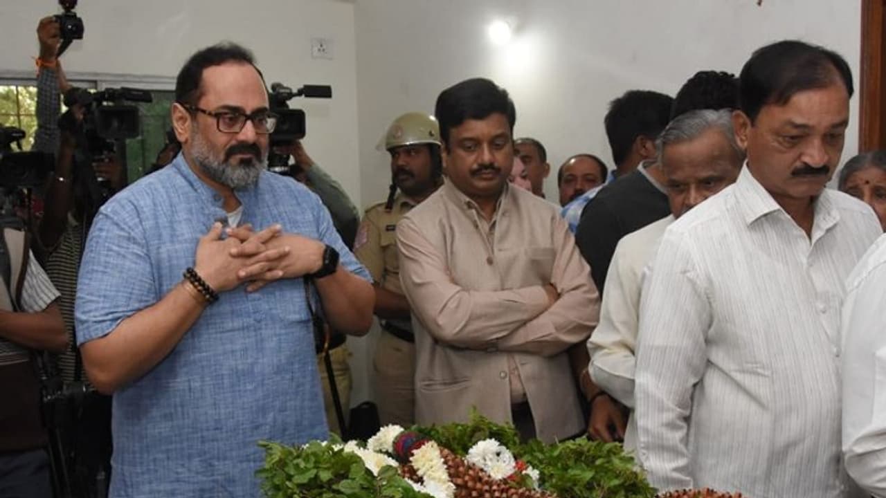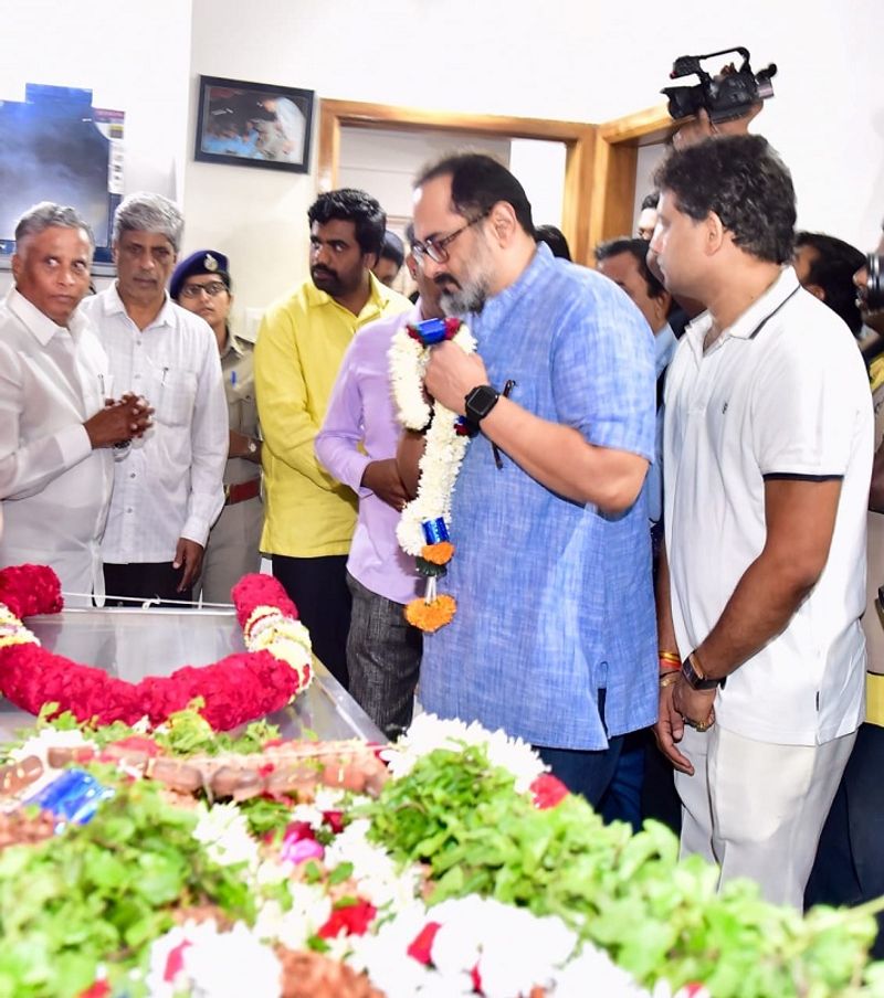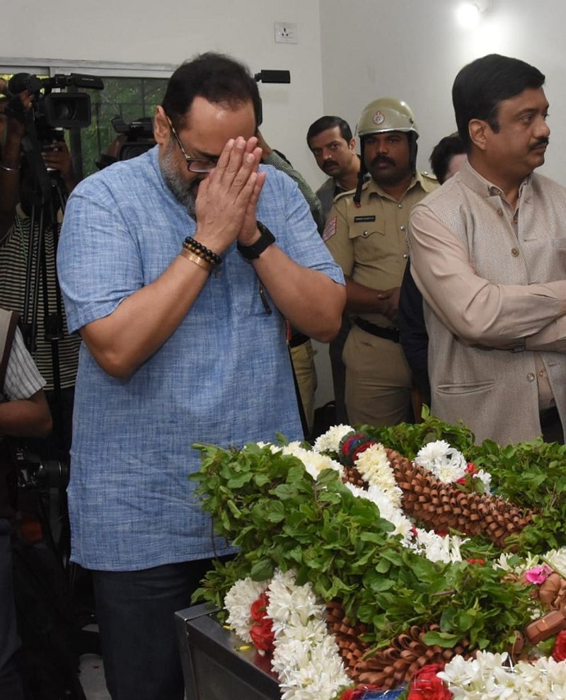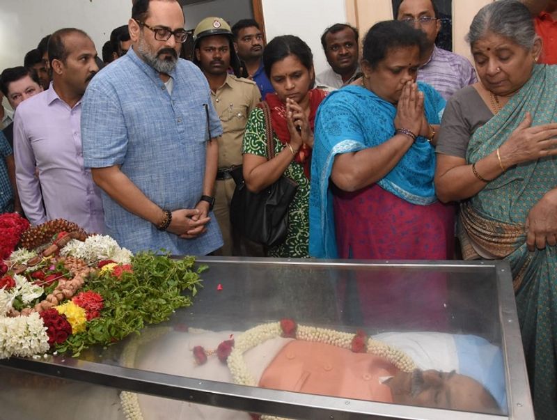 அப்போது ராஜீவ் சந்திரசேகர் எம்.பி. அவரது உடலுக்கு கண்ணீர் மல்க மாலை அணிவித்து அஞ்சலி செலுத்தினார். இதைத் தொடந்து மறைந்த அமைச்சரின் உடலுக்கு இறுதிக் சடங்குகள் நடைபெற்றன.