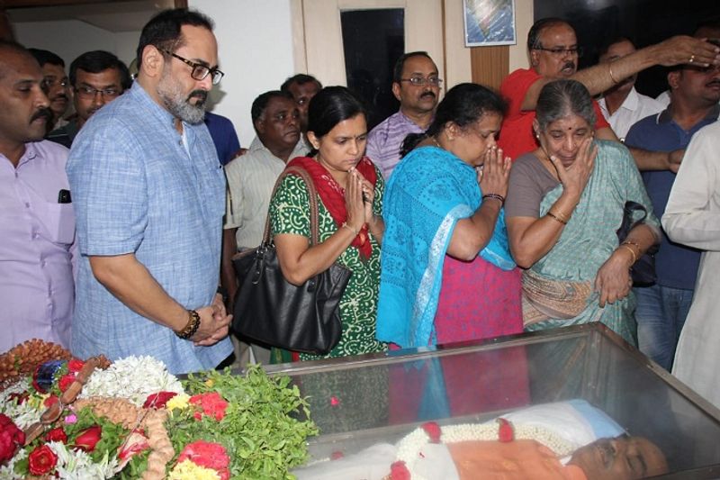 இந்நிலையில் இன்று மறைந்த அமைச்சர் அனந்தகுமாரின் உடலுக்கு இறுதிச் சடங்குகள் நடைபெற்றன. அவர்து உடல் வீட்டிலிருந்து பெங்களூருவில் உள்ள பாஜக அலுவலகத்தில் பொது மக்களின் அஞ்சலிக்காக வைக்கப்பட்டது.