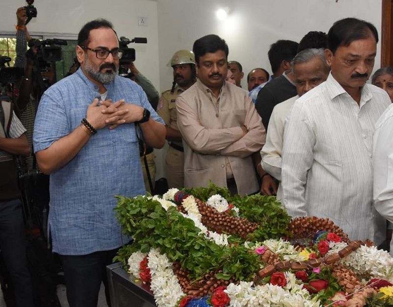 இதனிடையே பாஜக மாநிலங்களவை உறுப்பினரும், அமைச்சர் அனந்த குமாரின் நெருங்கிய நண்பருமான ராஜீவ் சந்திரசேகர் அவரின் உடலுக்கு மாலை அணிவித்து கண்ணீருடன் அஞ்சலி செலுத்தினார்.