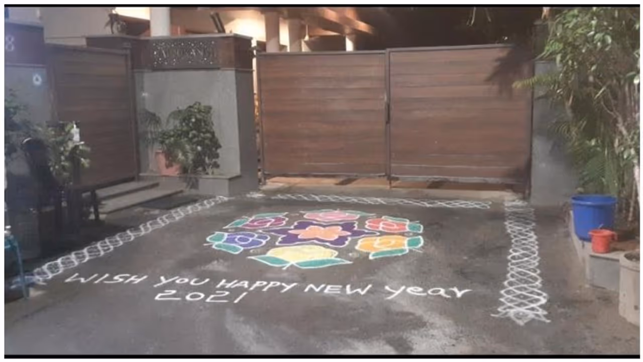 அதற்கு விடையளிக்கும் வகையில், இன்று 2021ம் ஆண்டு புத்தாண்டு பிறந்ததை அடுத்து ரஜினிகாந்த் வீட்டில் புத்தாண்டு வாழ்த்துக்கள் கூறும் கோலம் போடப்பட்டுள்ளது. இந்த கோலம் குறித்த புகைப்படங்கள் தற்போது சமூக வலைதளங்களில் வைரலாகி வருகிறது. பொதுவாகவே ரஜினிகாந்த், செய்தியாளர்களை அவரது போயஸ் கார்டன் இல்லத்தில் சந்தித்து பதிலளிப்பார். விளக்கம் கொடுப்பார். அதேபோல தனது ஆதரவை, புத்தாண்டு தினத்தில் தனது வீட்டு வாசலில் கோலம் போட்டு தனது ஆதரவு யாருக்கு என்று உணர்த்தி இருக்கிறார். அந்தக் கோலத்தில் இரட்டை இலை சின்னத்தை வரைந்து, அதன் மேல் மலர் கோலம் போட்டு இருக்கிறார்கள்.