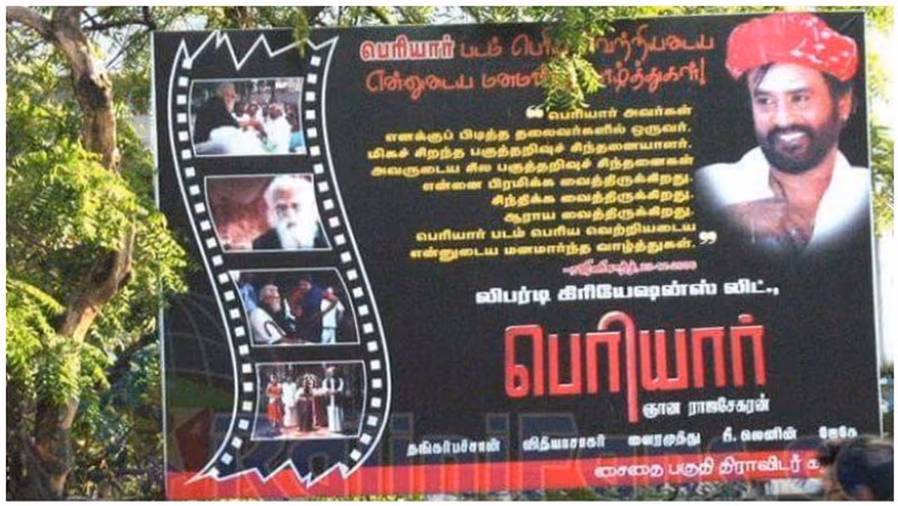 பெரியாரின் வாழ்க்கை வரலாற்றை மையமாகக் கொண்டு நடிகர் சத்யராஜ் நடிப்பில் எடுக்கப்பட்ட திரைப்படம் பெரியார். 2007-ம் ஆண்டில் வெளியான பெரியார் திரைப்படத்தை லிபர்டி கிரியேஷன்ஸ் சார்பில் கோ.சாமிதுரை தயாரிக்க ஞான ராஜசேகரன் இயக்கினார். இந்த திரைப்படம் உருவாவதற்கு அன்றைய தமிழக அரசு சார்பில் 95 லட்சம் வழங்கப்பட்டு உள்ளது.