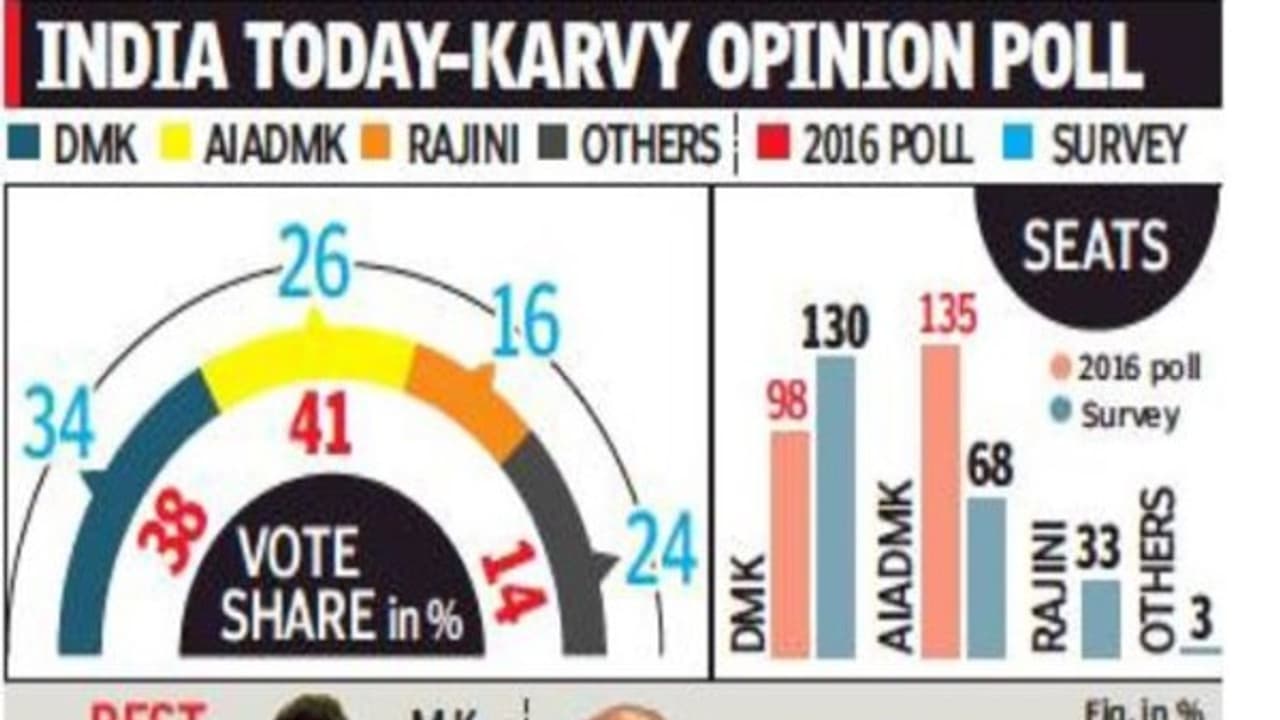 ஜெயலலிதா மறைவு, கருணாநிதியின் பங்களிப்பில்லாத அரசியல் என இருக்கும் நிலையில், தினகரன் வெற்றி ரஜினிகாந்தின் அரசியல் வருகை, கமலின் அதிரடி டிவீட்கள் என அடுத்தடுத்து பிரேக்கிங் பிரேக்கிங் ஆகவே வைத்திருக்கிறது தமிழக அரசியல். தமிழகத்தின் தற்போதைய அரசயில் சூழலில் தேர்தல் நடந்தால் மக்களின் எண்ண ஓட்டம் என்ன என்று இந்தியா டுடே கார்வி இணைந்து சர்வே ஒன்றை நடத்தியுள்ளது.