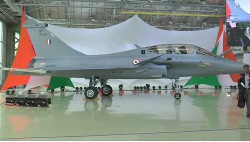 பிரான்ஸில் இருந்து இந்தியாவிடம் ஒப்படைக்கப்பட்ட ரஃபேல் விமானத்திற்கு சந்தனம், பொட்டு, டயர்களின் கீழ் எலுமிச்சை பழம் வைத்து பூஜை செய்யப்பட்டது. மேலும் ரஃபேல் விமானத்தின் மீது தேங்காய் வைத்து, முன்பகுதியில் ஓம் என்று இந்தியில் எழுதி மத்திய அமைச்சர் ராஜ்நாத்சிங்.விமானத்தைப் பெற்றுக் கொண்டார்.