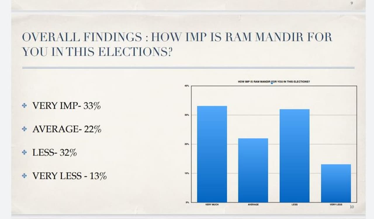 ராமர் கோயில் விவகாரம் எதிர்வரும் சட்டமன்ற தேர்தலில் எதிரொலிக்கும் என 33 சதவீதம் பேர் கருத்துக்கணிப்பில் கூறியுள்ள நிலையில் அது உத்திரப்பிரதேச மாநிலத்தில் பாஜகவின் வெற்றிக்கு உதவியாக இருக்கும் என கணிக்கப்பட்டுள்ளது. பாஜக ஆட்சிக்கு வந்தால் பாபர் மசூதி இருந்த இடத்தில் ராமர் கோயில் கட்டப்படும் என்பதே அக்கட்சியின் பிரதான தேர்தல் வாக்குறுதிகளில் ஒன்று. அந்த வாக்குறுதியை நம்பி பெரும்பாலான இந்துக்கள் கடந்த தேர்தலில் பாஜகவுக்கு வாக்களித்தனர். பல ஆண்டு கால சட்டப் போராட்டத்திற்கு பின்னர் ராமர் கோயில் கட்டும் பணி தொடங்கி நடைபெற்று வருகிறது. இந்நிலையில் எதிர்வரும் 2022- மார்ச் மாதம் உத்திரப்பிரதேச மாநில சட்டமன்ற உறுப்பினர்களின் பதவிக்காலம் முடிவடையும் நிலையில் ஏப்ரல் மாதத்தில் சட்டமன்ற தேர்தல் நடைபெற உள்ளது. அதை எதிர்கொள்வதற்கு அம்மாநில அரசியல் கட்சிகள் தீவிரம் காட்டி வருகின்றன,