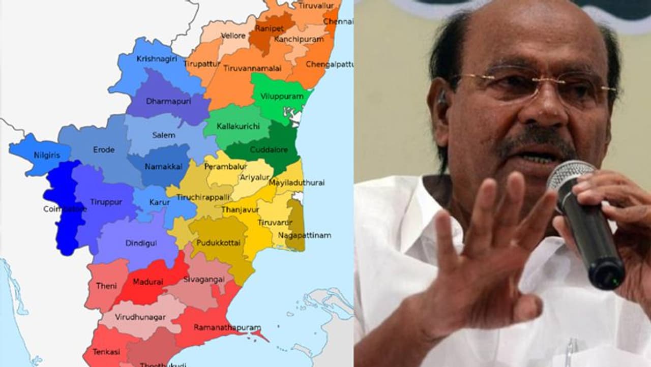 ஆந்திரா, தெலுங்கானா, ஹரியானா என மாவட்டங்களைப் பிரித்து புதிய மாவட்டங்களை அமைத்த மாநிலங்கள் அனைத்திலும் வளர்ச்சி விகிதம் அதிகரித்திருக்கிறது. தமிழ்நாடும் அதிவேக வளர்ச்சிப் பாதையில் பயணிக்க வேண்டும் என்றால், தமிழ்நாட்டில் உள்ள பெரிய மாவட்டங்கள் பிரிக்கப்பட வேண்டும். இது குறித்து ஆய்வு செய்து தமிழக அரசுக்கு பரிந்துரைக்க தமிழ்நாடு மாவட்ட மறுசீரமைப்பு ஆணையத்தை தமிழக அரசு உடனடியாக அமைக்க வேண்டும் என்று வலியுறுத்துகிறேன் என