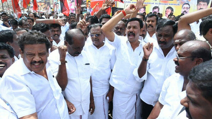 இவருக்கு சுப.தங்கவேலன் தரப்பு எந்த ஒத்துழைப்பும் கொடுக்கவில்லை என்கிற புகார் உள்ளது. இந்த நிலையில் நேற்று ராமநாதபுரத்தில் தமிழக அரசுக்கு எதிரான ஆர்பாட்டத்தை முத்துராமலிங்கம் தடல் புடலாக ஏற்பாடு செய்திருந்தார். மாவட்டத்தின் அனைத்து பகுதிகளில் இருந்தும் தொண்டர்களை ராமநாதபுரத்திற்கு கூட்டி வந்து குவித்தார். சொன்ன நேரத்திலும் ஆர்பாட்டத்தை முத்துராமலிங்கம் தொடங்கினார். மேடையில் முத்துராமலிங்கம் உள்ளிட்டோர் தமிழக அரசுக்கு எதிராக முழக்கம் எழுப்பிக் கொண்டிருந்த நிலையில் திடீரென சுப.தங்கவேலன் தனது ஆதரவாளர்களுடன் பேரணியாக ஆர்பாட்டம் நடைபெற்ற இடத்திற்குள் முழக்கமிட்டுக் கொண்டே நுழைந்தார்.