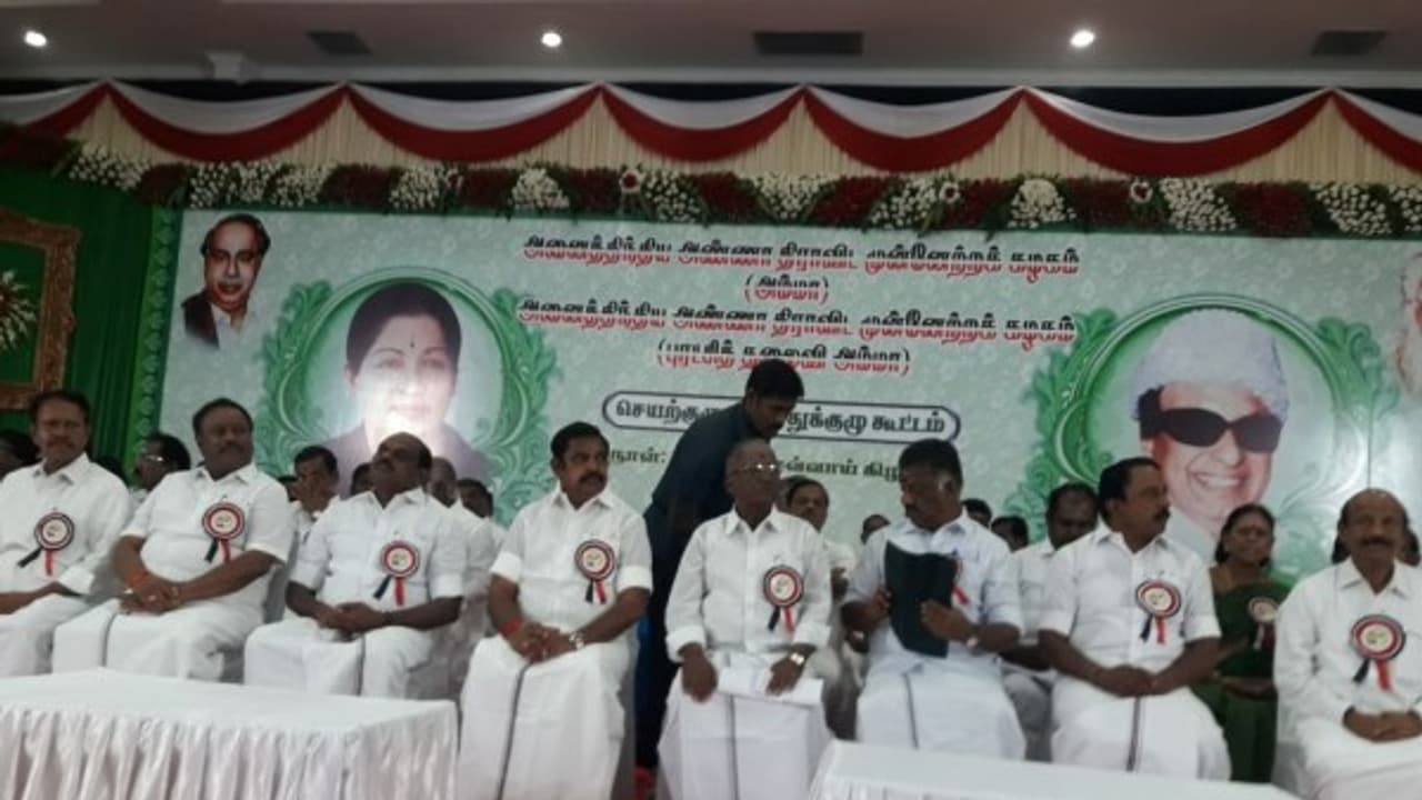தீர்மானம் 1: இரட்டை இலை சின்னத்தையும், அதிமுக என்ற கட்சிப் பெயரையும் தேர்தல் ஆணையத்தில் இருந்து மீட்பது.
