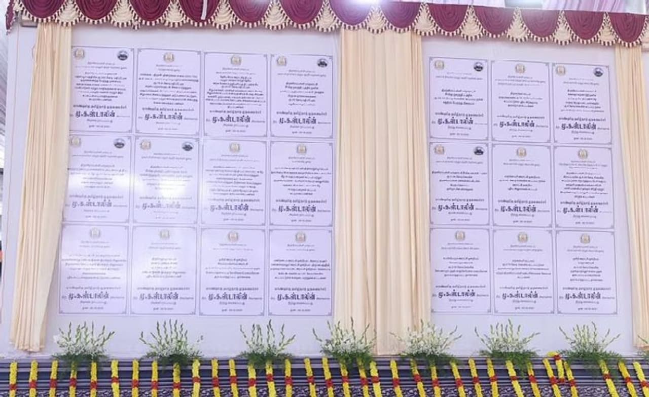 மேலும், பஞ்சப்பூரில் புதிதாக அமைய உள்ள ஒருங்கிணைந்த பேருந்து நிலையத்திற்கான அடிக்கல் நாட்டினார். அதற்காக முதல் கட்டமாக ரூ.350 கோடி ஒதுக்கீடு செய்யப்பட்டுள்ளது. அத்துடன் 28 அரசுதுறைகளின் மூலம் 45 ஆயிரத்து 344 பயனாளிகளுக்கு ரூ.327 கோடியே 48 லட்சம் மதிப்பிலான நலத்திட்ட உதவிகளையும் வழங்கினார். இந்த விழாவில் மொத்தம் ரூ.1,084 கோடியே 80 லட்சம் மதிப்பிலான நலத் திட்டங்களை செயல்படுத்தினார். பின்னர் பேசிய அவர், திருச்சி மாநகராட்சியின் வளர்ச்சியை கருத்தில் கொண்டு திட்டங்கள் நிறைவேற்றப்படுகின்றன.