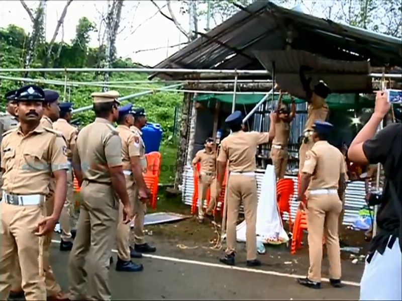 இதையடுத்து அங்கு பதற்றம் நிலவி வருவதால் 500 க்கும் மேற்பட்ட போலீசார் குவிக்கப்பட்டுள்ளனர். போலீஸ் பாதுகாப்புடன் நிலக்கல் தாண்டி பெண்களை போலீசார் அனுமதித்து வருகின்றனர்.