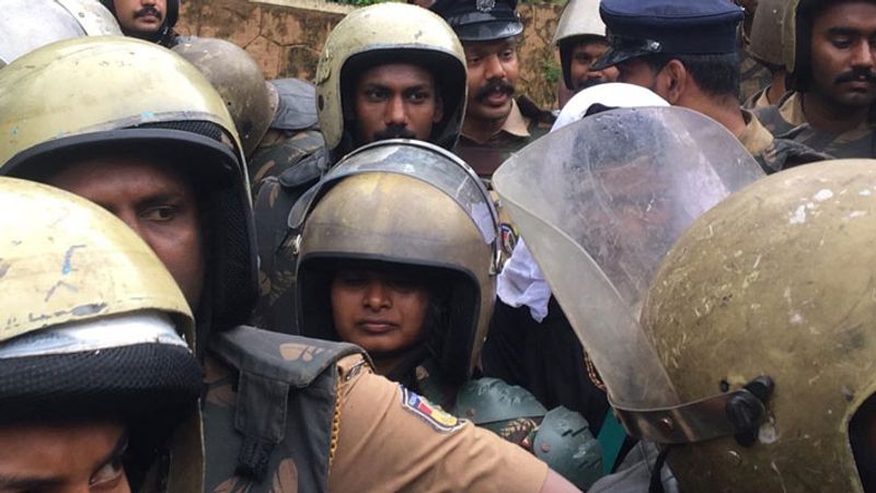 அந்த பெண்கள் ஹெல்மெட் அணிந்து சென்றனர். அவர்களைச் சுற்றி நூற்றுக் கணக்கான போலீசார் அரணாக நின்று பாதுகாப்பு கொடுத்தனர். ஆனால் அய்யப்ப பக்தர்கள் அவர்களை உள்ளே நுழைய விடாமல் தடுத்து நிறுத்தினர்.