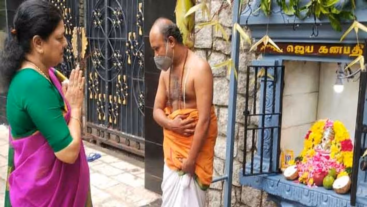 விநாயகர் சதுர்த்தியை முன்னிட்டு போயஸ் கார்டனில் உள்ள ஜெய கணபதி கோயிலில் சசிகலா இன்று வழிபாடு செய்தார்.