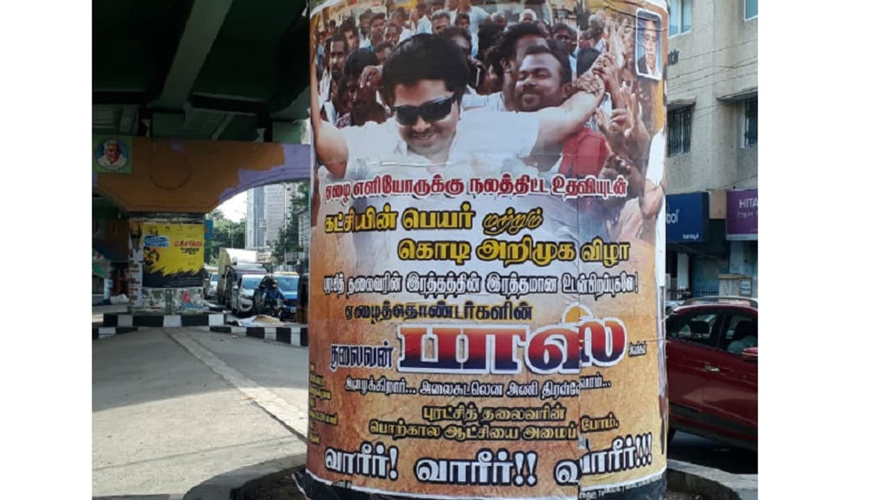 ஒரு காக்கா தம்மாதூண்டு ஆய் இருந்ததுக்கு இவ்வளவு கலவரமா? என வடிவேலு கேட்பதைப்போல சசிகலா குடும்பத்திலேயே இரண்டு கட்சிய ஆரம்பித்து தமிழக மக்களை தெறிக்க விட்டுள்ள நிலையில், அதே மன்னார்குடி ஃபேமிலி ஒரு நியூ என்ட்ரி போட்டுள்ளது. ஆமாம் தனது கட்சியின் பெயர், கொடியை திருத்தணியில் வைத்து வெளியிடப் போகிறாராம் தலைவன் பாஸ். நாளை காலை 10.30 மணிக்கு இந்த நிகழ்ச்சி நடைபெறும் என போஸ்டர் அடித்து தலை நகரம் முழுவதும் ஒட்டியுள்ளனர். அதில் எண்ணக் கொடுமை என்றால் புரட்சித் தலைவரின் ஆட்சி அமைய என்று கூறி எம்ஜிஆர் ஸ்டைலில் போஸ் கொடுத்து தாறுமாறு பண்ணியிருக்கிறார் தலைவன் பாஸ். ஏழை எளியோருக்கு நலத் திட்ட உதவிகள் வழங்கப் போவதாகவும், அதற்கு புரட்சித் தலைவரின் ரத்தத்தின் ரத்தங்கள் அலை கடலென திரண்டு வர வேண்டும் வாசகங்கள் போட்டு போஸ்டரில் போஸ் கொடுத்துள்ளார்.