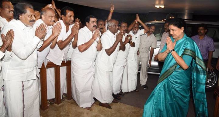 அதிமுக சட்டமன்றக் குழுத் தலைவராக சசிகலா தேர்ந்தெடுக்கப்பட்டதை அடுத்து அவர் முதலமைச்சராக பொறுப்பேற்பார் என எதிர்பார்க்கப்பட்டது. ஆனால் ஓபிஎஸ் தூக்கிய போர்க்கொடி காரணமாக அந்நிகழ்ச்சி ரத்து செய்யப்பட்டது.