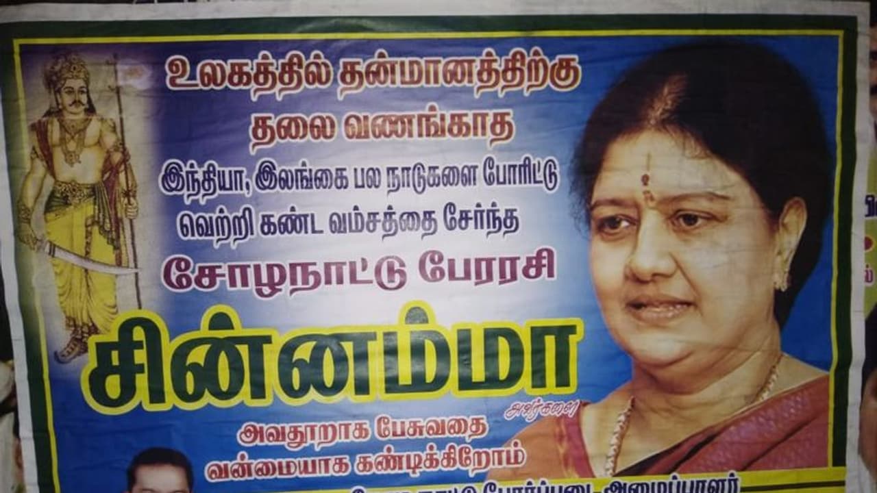 சசிகலாவை அவதூறாக பேசியதால், மதுரை உசிலம்பட்டியில் அவரது ஆதரவாளர்கள் ஒட்டியுள்ள போஸ்டரால் கலைக்கட்டியுள்ளது. அந்த போஸ்டரில், "உலகத்தில் தன்மானத்திற்கு தலைவணங்காத இந்தியா, இலங்கை பல நாடுகளில் போரிட்டு வெற்றிகண்ட வம்சத்தை சேர்ந்த சோழ நாட்டு பேரரசி சின்னம்மா அவர்களை அவதூறாக பேசுவதை வன்மையாக கண்டிக்கிறோம் இப்படிக்கு சோழ நாட்டு போர்ப்படை அமைப்பாளர் காவல்துறை தன்மான போராளி மா.ஒச்சாத்தேவர் காவல்துறை HC/CR உசிலம்பட்டி மதுரை மாவட்டம்" இப்படியான போஸ்டர் களைகட்டியுள்ளது.