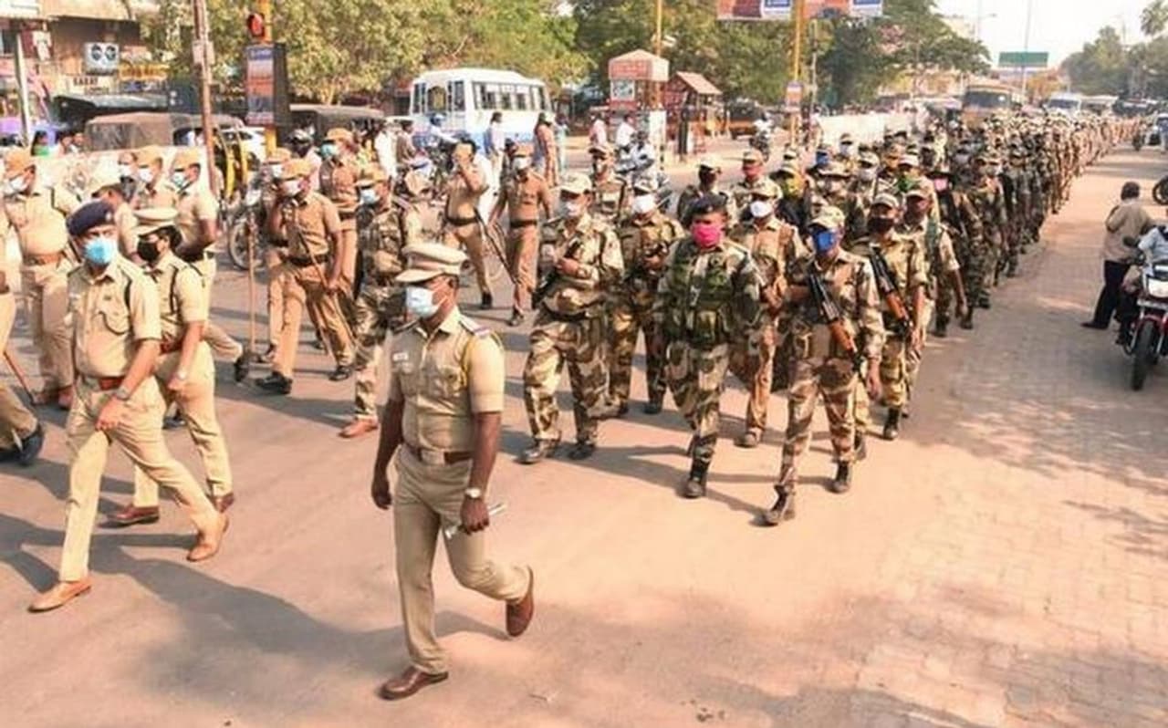 சென்னை பெருநகர காவல் ஆணையாளர் மகேஷ்குமார் அகர்வால் அவர்கள் வாக்குச்சாவடிகள், மின்னணு வாக்குப்பதிவு இயந்திரங்கள் வைக்கப்பட்டுள்ள இடங்களான பள்ளிகள் மற்றும் கல்லூரிகளுக்கு சென்று ஆய்வு செய்து அரசு அதிகாரிகள் மற்றும் காவல் அதிகாரிகளுடன் கலந்தாய்வு மேற்கொண்டு அறிவுரைகள் வழங்கி வருகின்றார்கள். அதேபோல் பொதுமக்கள் அச்சமின்றி வாக்களிக்க உரிய பாதுகாப்பு உணர்வை ஏற்படுத்திட சென்னையில் உள்ள அனைத்து காவல் நிலையங்களிலும் தேர்தல் பாதுகாப்பு பணியில் ஈடுபடும் காவல் அதிகாரிகள், காவலர்கள் மற்றும் பிற மாநிலங்களில் இருந்து பாதுகாப்பு பணிக்காக வந்துள்ள மத்திய துணை ராணுவ படையினர் ஒருங்கிணைந்து முக்கிய மக்கள் கூடும் வசிப்பிட பகுதிகளில் காவல் கொடி அணிவகுப்பு( police flag March) நடத்தி வருகின்றனர்.