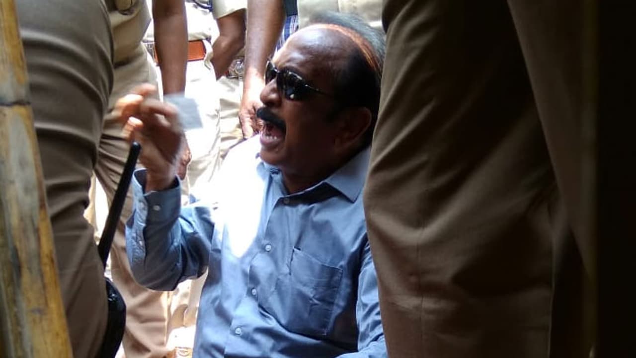 சட்டத்தின் அடிப்படையில் கைது செய்யப்பட்டுள்ள நக்கீரன் கோபாலை சந்திக்க அனுமதிக்க வேண்டும் என்று மதிமுக பொது செயலாளர் வைகோ போலீசாருடன் கடும் வாக்குவாதத்தில் ஈடுபட்டார்.