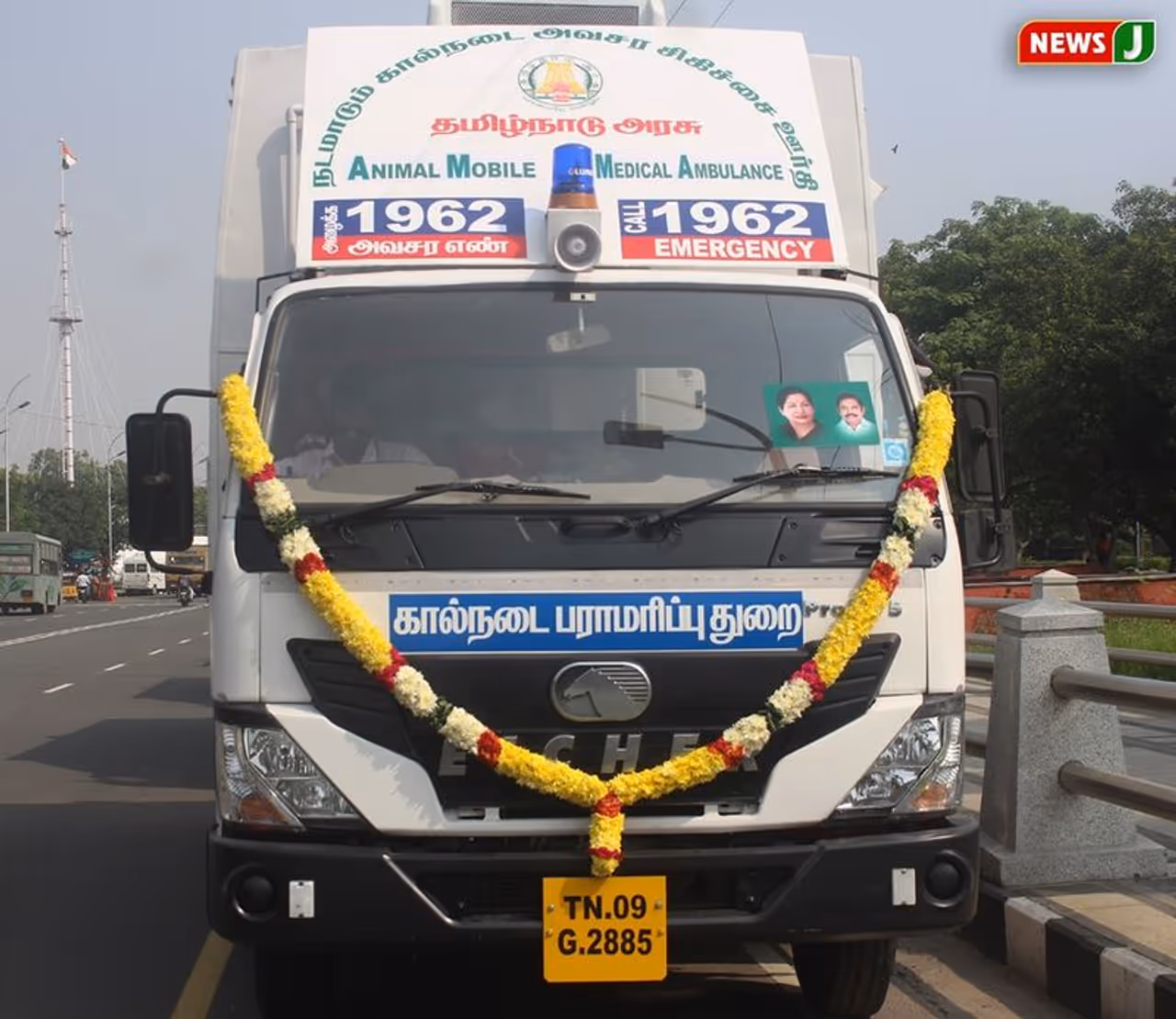 இந்தியாவிலேயே முதல்முறையாக தமிழகத்தில் கால்நடைகளுக்காக ஆம்புலன்ஸ் சேவை தொடங்கப்பட்டிருக்கிறது.