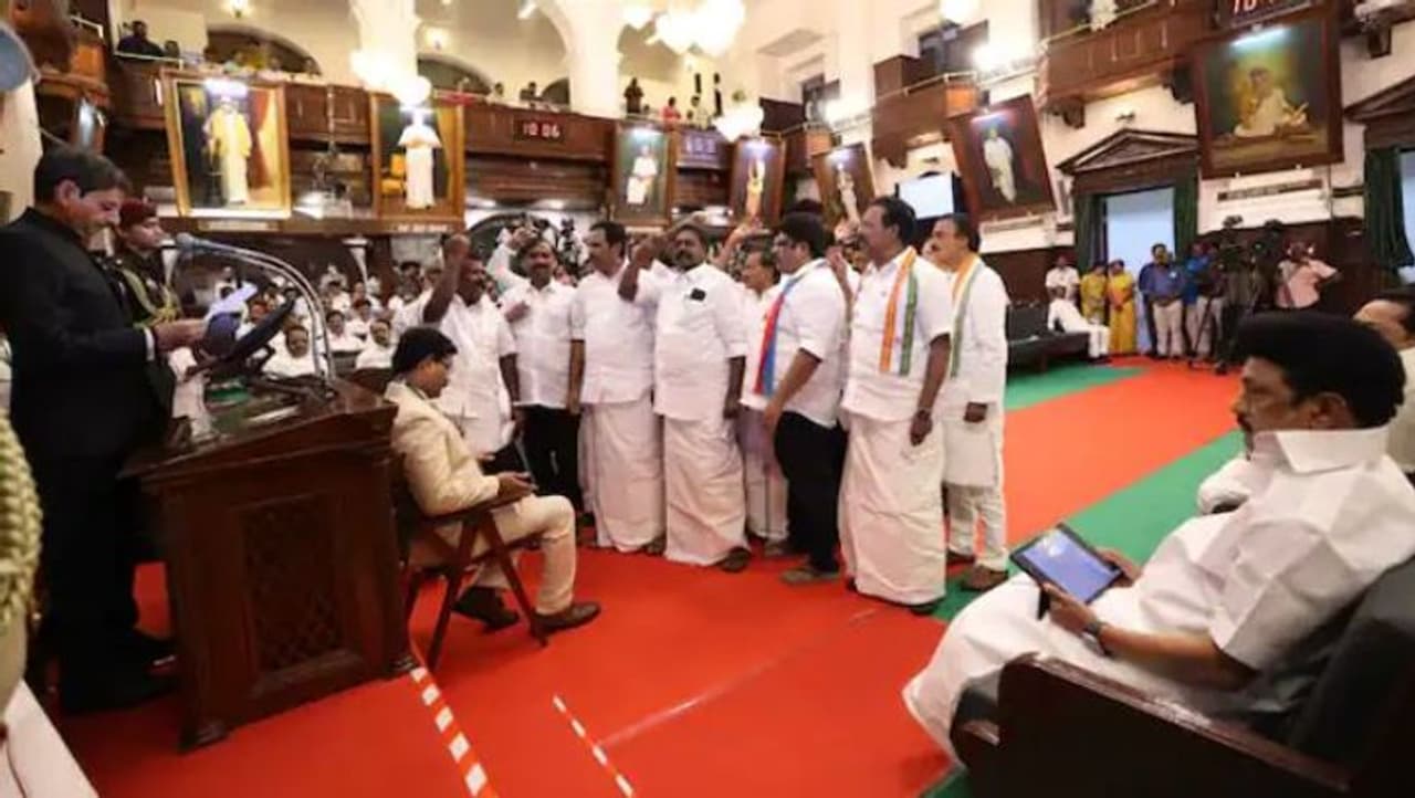 அதே நேரத்தில் பேரவை தலைவர் இருக்கை முன் கீழே அமர்ந்து தர்ணா போராட்டம் உள்ளிட்டவற்றில் ஈடுபட கூடாது என எச்சரிக்கை விடுத்தார். ஆளுநர் உரையானது அமைச்சரவையின் ஒப்புதல் பெறப்பட்டு அதனை வாசிக்க ஆளுநரும் முழுவதும் இசைவு அளித்த நிலையில் அதில் வாசிக்கும் போது ஆளுநர் சில பகுதிகளைளை நீக்கியும், சில பகுதிகளை சேர்த்தும் வாசித்தார். இதனால் ஒரு அசாதார சூழல் நிலவியது. இந்த நிலையில் பேரவையின் மாண்பை காக்கும் வகையில் விதி எண் 17 தளர்த்தி ஆளுநர் உரை அச்சிடப்பட்டதை பதிவு செய்யுமாறு தமிழக முதலமைச்சர் மு க ஸ்டாலின் மதிநுட்பத்தோடு செயல்பட்டு சட்டப்பேரவையின் மாண்பை பாதுகாத்துள்ளார்.