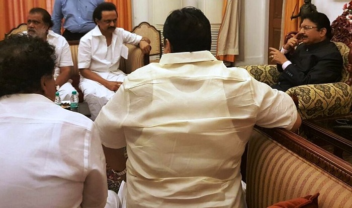 திமுக உறுப்பினர்களை வெளியேற்றியதைக் கண்டித்து கிழிந்த சட்டையுடன் ஆளுநர் வித்யாசாகர் ராவை நேரில் சந்தித்து எதிர்கட்சித் தலைவர் ஸ்டாலின் புகார் தெரிவித்தார்.