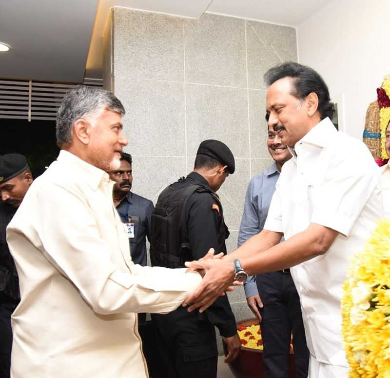 இந்நிலையயில், தமிழகத்தில்காங்கிரஸ்கூட்டணியில்உள்ளதிமுககட்சியின்தலைவர்மு.கஸ்டாலினை சந்திரபாபு நாயுடு சென்னையில் ஆழ்வார்பேட்டையில் உள்ள அவரது இல்லத்தில் சந்தித்துப் பேசினார்.