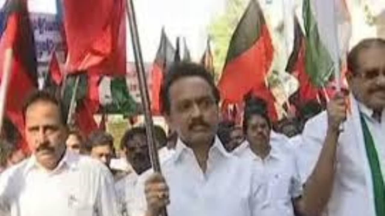 சென்னை கொளத்தூரில் பேரணியாக சென்ற திமுக செயல் தலைவர் ஸ்டாலின் ஆயிரக்கணக்கானோருடன் சாலை மறியலில் ஈடுபட்டுள்ளார். இடிதயடுத்து ஸ்டாலின் கைது செய்யப்பட்டார்.