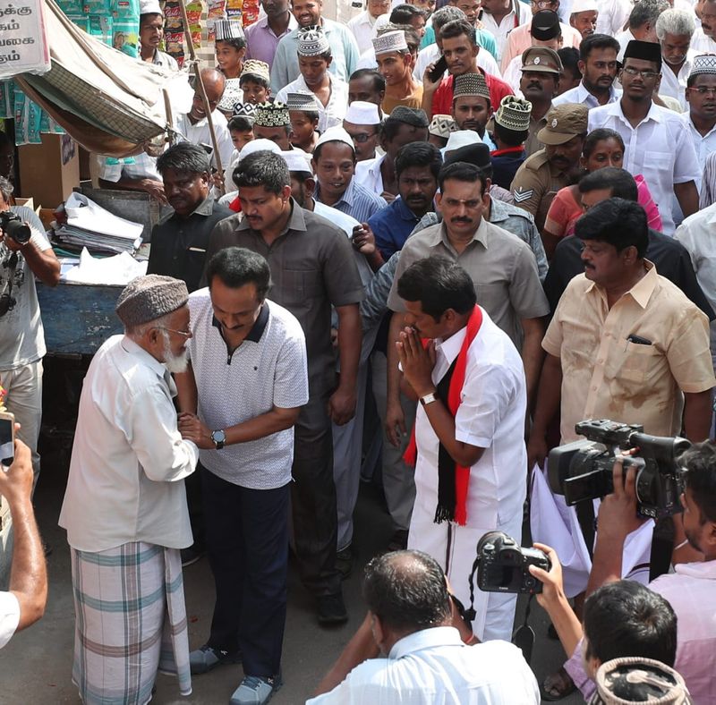 அப்போது ஏராளமான இஸ்லமிய பெண்கள் அவருக்கு கைகுலுக்கி வரவேற்று ஆதரவு தெரிவித்தனர். அப்போது அவரை சூழ்ந்துகொண்ட பெண்கள் இந்த தேர்தலில் உங்களுக்குத்தான் வாக்களிப் போம், எங்கள் குறைகளை நீங்கள் தீர்த்து வையுங்கள் என்றனர்.