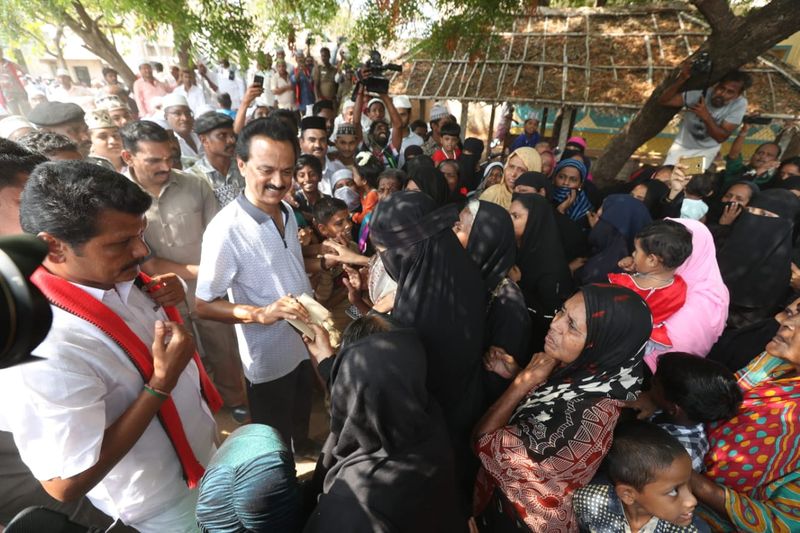இடைத் தேர்தல் நடைபெறும் அரவக்குறிச்சி தொகுதிக்குட்பட்ட பள்ளபட்டி பகுதியில் வீதி வீதியாக நடந்து சென்ற திமுக தலைவர் ஸ்டாலின் அங்கு கூடியிருந்த இஸ்லாமிய பெண்களிடம் வாக்கு சேகரித்தார்.