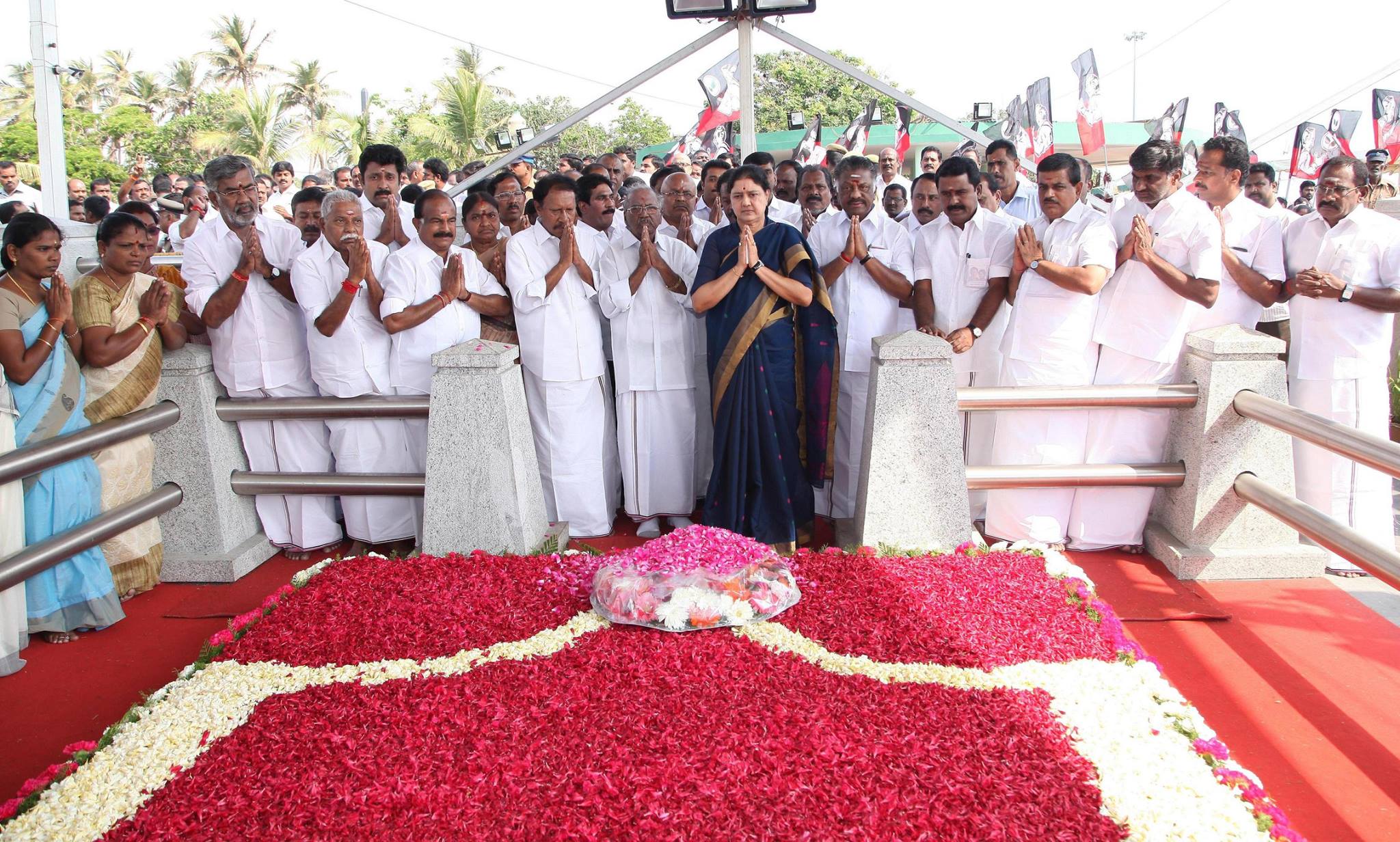 காலை சுமார் 10 மணியளவில் சசிகலா அண்ணா நினைவிடத்தில் மலர் தூவி மரியாதை செலுத்தினார். மறைந்த முதல்வர் ஜெயலலிதா நினைவிடத்துக்கு சென்று அங்கேயும் மரியாதை செலுத்தினார். அப்போது, அவரது கண்ணீர் நீர் வடிந்தது. அதனை துடைத்தபடியே,எம்.ஜி.ஆர் நினைவிடத்திலும் மரியாதை செலுத்தி விட்டு புறப்பட்டு சென்றார்.