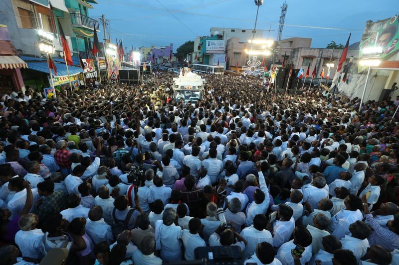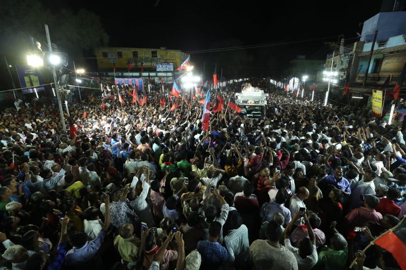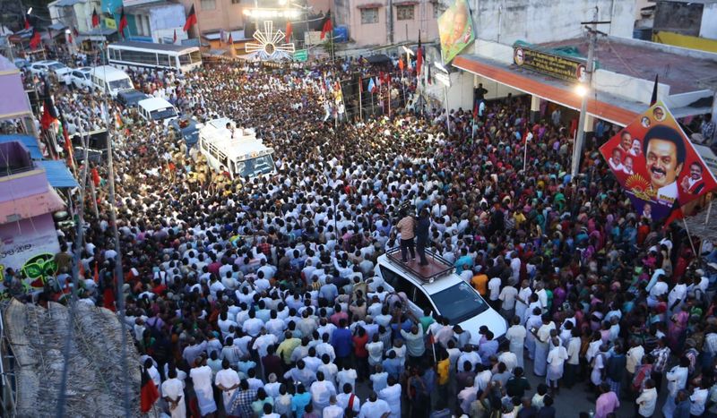வேலூர் மக்களவை தொகுதிக்கான தேர்தல் வரும் 5ம் தேதி நடைபெறவுள்ளது. இந்த தேர்தலில் தி.மு.க சார்பில் சார்பில் போட்டியிடும் வேட்பாளர் கதிர் ஆனந்தை ஆதரித்து அணைக்கட்டு பகுதியில் தி.மு.க தலைவர் மு.க.ஸ்டாலின் திறந்த வேனில் பிரசாரம் செய்தார்.