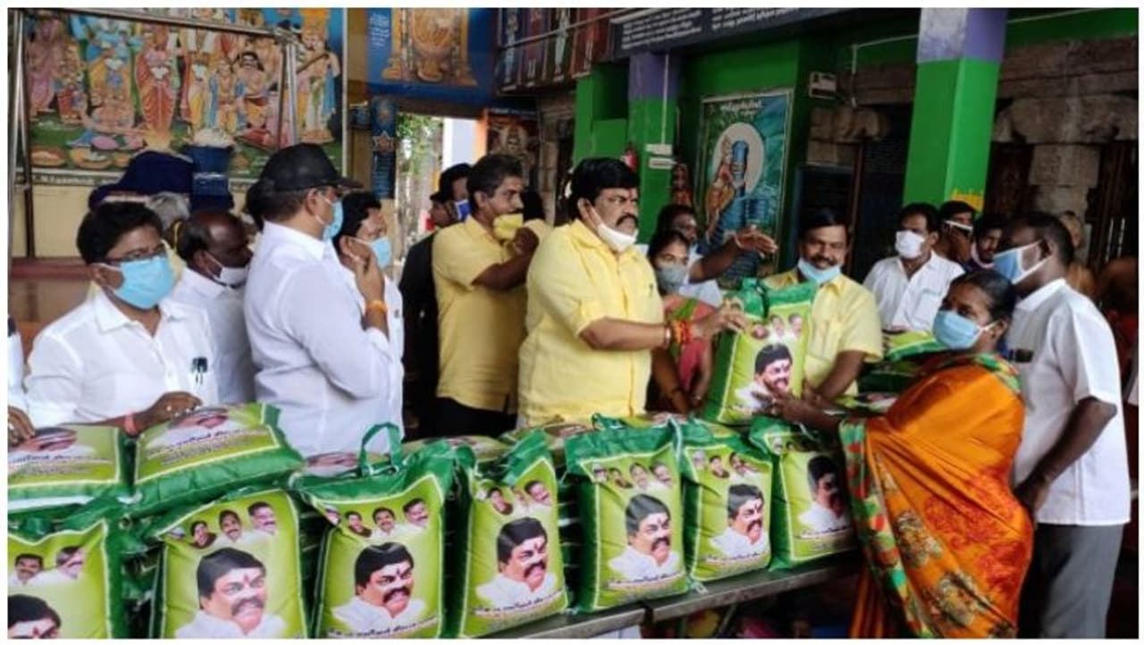 விருதுநகர் மாவட்டம், திருச்சுழி உள்ளிட்ட பகுதிகளில் அறநிலையத்துறை கீழ் செயல்படும் கோவில்களில் பணிபுரியும் அர்ச்சகர்களுக்கு 20 கிலோ அரிசியை நிவாரணமாக பால்வளத்துறை அமைச்சர் கே.டி.ராஜேந்திர பாலாஜி வழங்கினார். பின்னர் செய்தியாளர்களிடம் பேசிய அவர், ‘’பேரிடர் காலத்திலும் கூட தமிழகத்தில் உணவில்லை என்ற நிலை இருக்க கூடாது என்ற நோக்கில் அம்மா உணவகம் செயல்பட்டு வருகிறது. பட்டாசு மற்றும் தீப்பெட்டி தொழிற்சாலைகள் இயங்க தமிழக அரசு எந்தவித தடையும் விதிக்கவில்லை. தடையை நீக்கி சிறு, குறு தொழில்கள் தொடங்கலாம் என உத்தரவ தமிழக முதல்வர் தெரிவித்துள்ளார்.