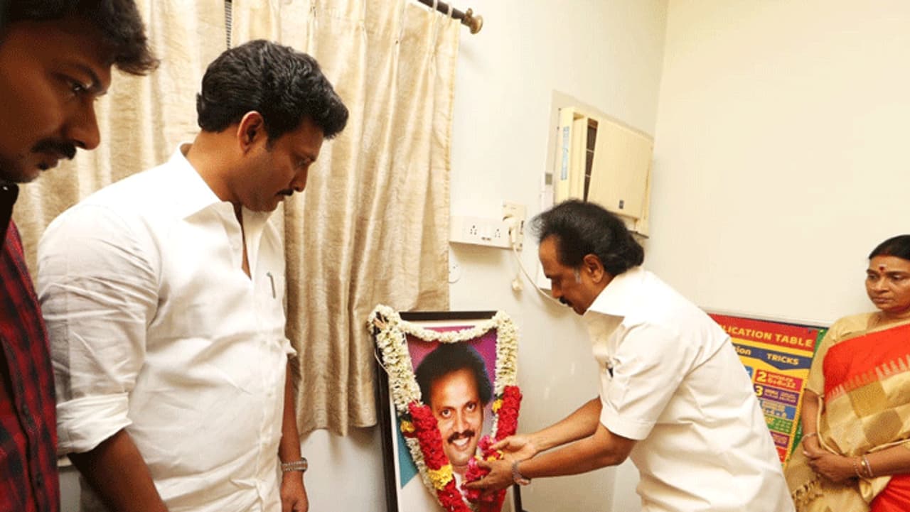 இதற்கு முன்னதாக, பொய்யாமொழி அவர்களின் நினைவு தினம் நேற்று என்பதால், சென்னை தி நகரில் உள்ள அன்பில் மகேஷ் வீட்டிற்கு சென்றுவிட்டு பொய்யாமொழி அவர்களுக்கு ,மலர்தூவி வணங்கி விட்டு, அங்கிருந்து அண்ணா அறிவாலயம் புறப்பட்டார்.