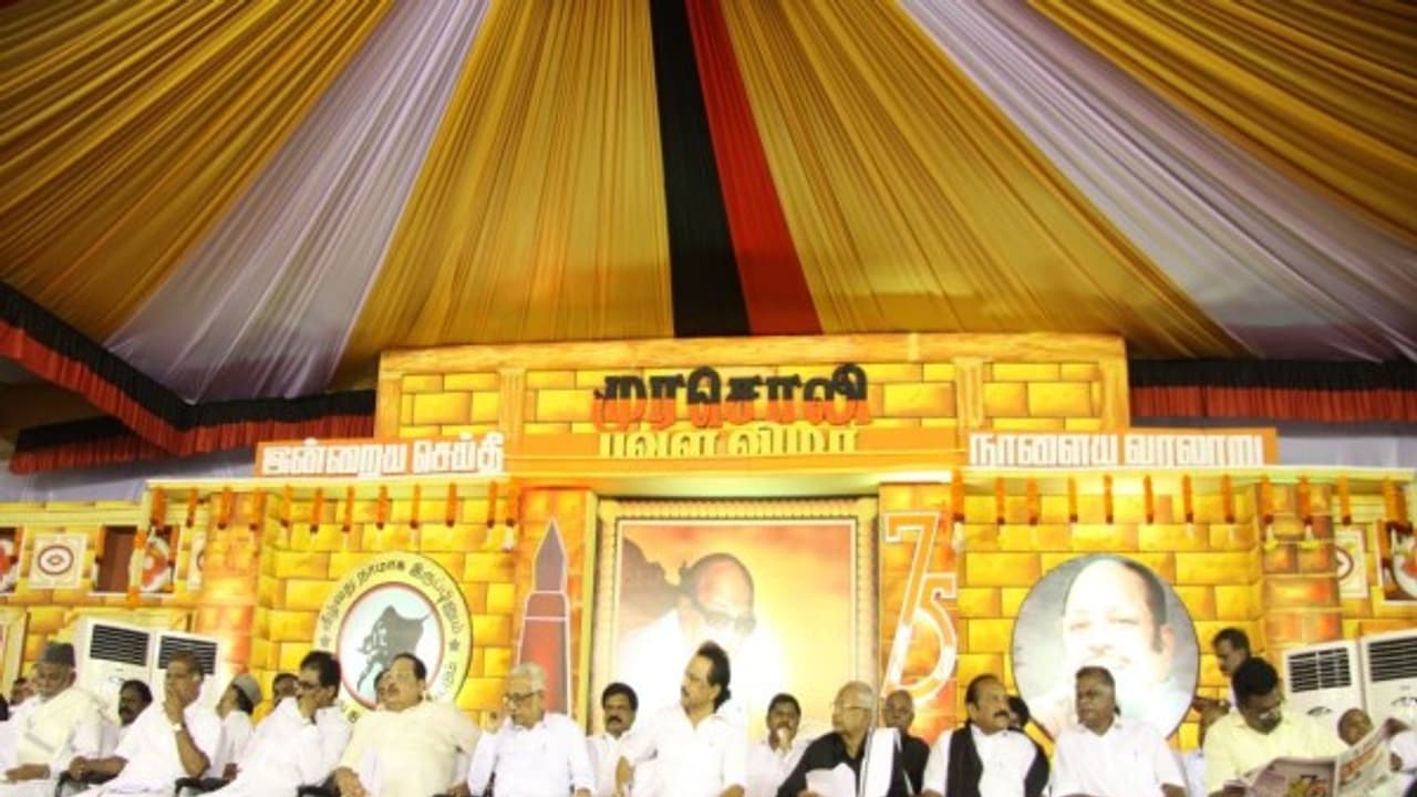 சென்னை கொட்டிவாக்கம் ஒய்.எம்.சி.ஏ. மைதானத்தில் முரசொலி பவளவிழா பொதுக்கூட்டம் நடைபெற்றது. தி.மு.க. பொதுச்செயலாளர் க.அன்பழகன் தலைமையில் நடைபெற்ற இக்கூட்டத்தில் பங்கேற்ற மு.க.ஸ்டாலின், சமூக நீதியை காக்க வேறுபாடுகள், மாறுபாடுகளை மறந்து நாம் அனைவரும் ஒன்றுபட வேண்டும் என கேட்டுக் கொண்டார்.