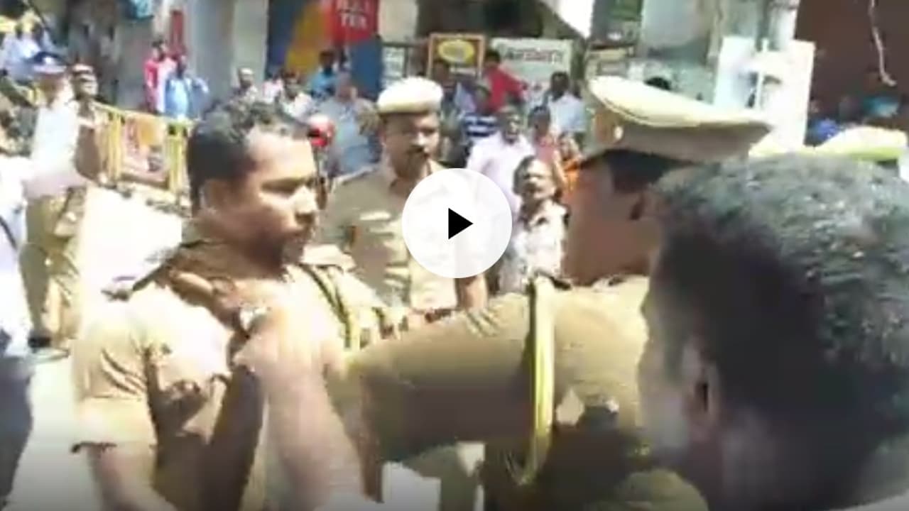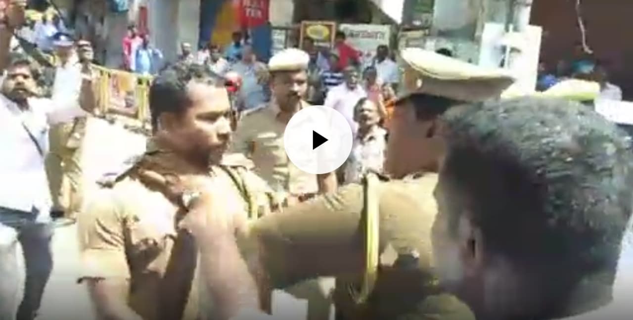 மேலும், சாலையில் நின்று கொண்டு வாகனங்களை மறித்து வந்தனர். அங்கு விரைந்து வந்த நாகர்கோவில் டவுன் எஸ்.ஐ. முத்துமாரி, அவர்களை கலைந்து செல்லுமாறு கேட்டுக் கொண்டுள்ளார். ஆனால், சுரேஷ் ராஜன் உள்ளிட்ட திமுக நிர்வாகிகள் கலைய மறுத்து அங்கேயே நின்று கொண்டிருந்தனர். இது மெல்ல மெல்ல வாய்த்தகராறாக மாறியது. பின்னர், இருவருக்கும் தடித்த வார்த்தைகளால் சொற்போராக மாறிப்போனது. உச்சகட்டமாக காது கூசும் அளேவுக்கு இரு தரப்பிலும் பச்சை பச்சையாக வார்த்தைகள் பரிமாறிக் கொள்ளப்பட்டன.