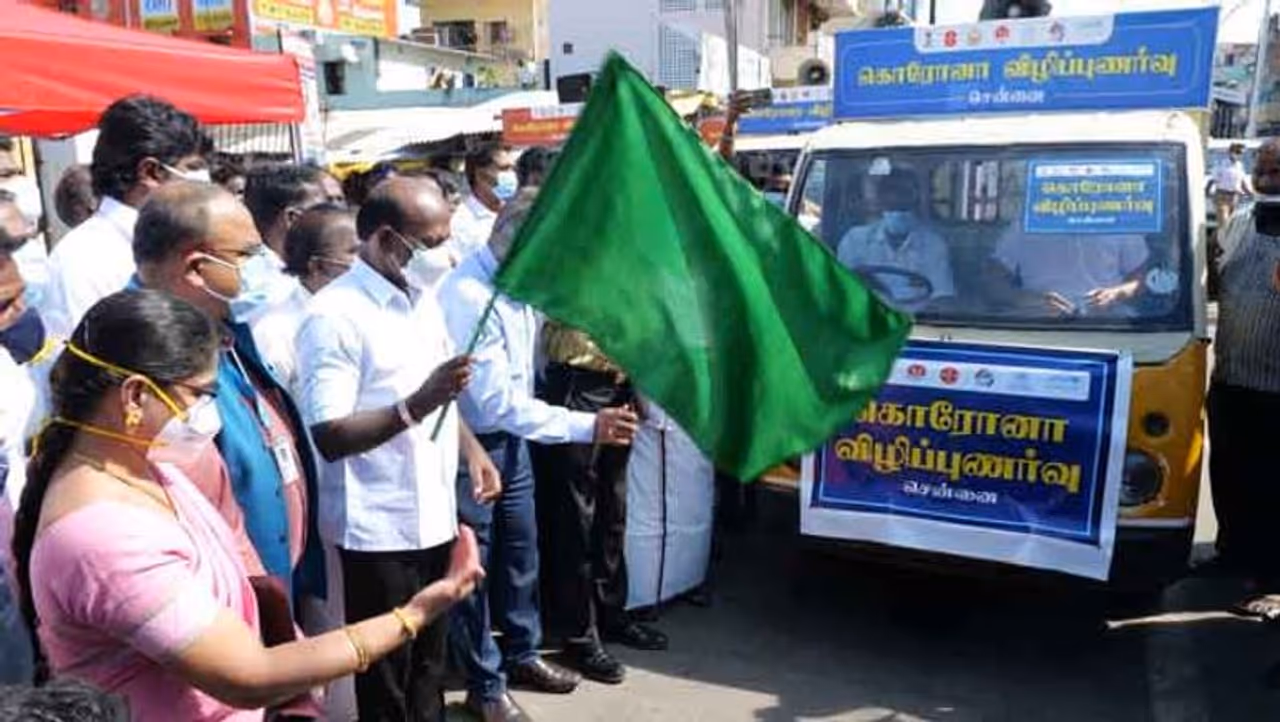 பொது சுகாதாரத் துறை மற்றும் யுனிசெப் இணைந்து நடத்தும் கொரோனா விழிப்புணர்வு பிரச்சார வாகனத்தை சுகாதாரத் துறை அமைச்சர் மா.சுப்பிரமணியன் திருவான்மியூரில் இன்று கொடியசைத்து துவக்கி வைத்தார். இதனையடுத்து, செய்தியாளர்களுக்கு பேட்டியளித்த அமைச்சர் மா.சுப்பிரமணியன்;- கொரோனா பேரிடரால் ஏற்படும் பாதிப்பு, அதில் இருந்து மீண்டு வருவதற்கான வழிமுறைகள் குறித்தும் இதில் அறிவுறுத்தப்படும். தடுப்பூசி தான் கொரோனா தொற்றுக்கு ஒரே தீர்வு என்ற அடிப்படையில் அதுகுறித்து விழிப்புணர்வு பிரச்சாரம் மேற்கொள்கொள்கிறோம் என்று கூறினார்.